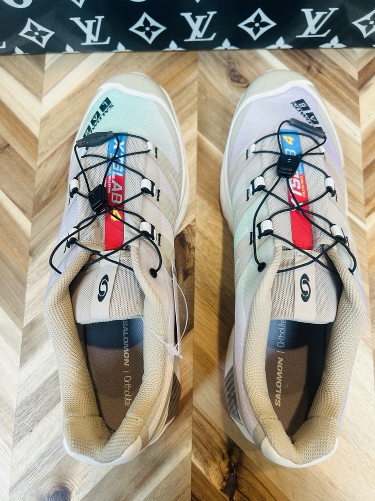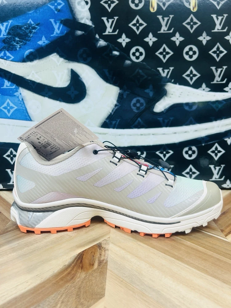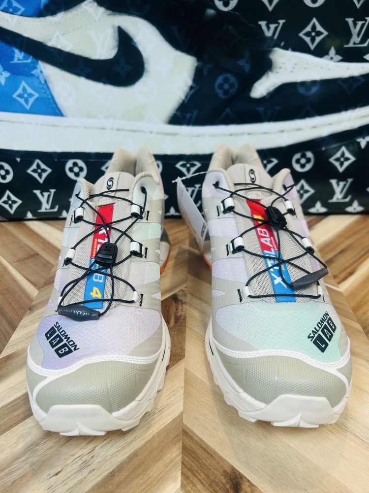 Elevate your sneaker game with these limited edition Salomon XT-4 OG Aurora Borealis Shortbread Orange Silver Grey sneakers. These shoes feature a lace-up closure and a low-top shaft style, making them perfect for cross training and CrossFit activities. The cushioned and breathable features of these sneakers ensure maximum comfort, while the rubber outsole provides excellent traction. These Salomon XT-4 sneakers come in a stunning multicolor design, with a solid pattern that is perfect for the nature-inspired theme of the shoe. The synthetic upper material and standard shoe width make these shoes a perfect fit for men's US size 13 and UK size 12.5. The sneakers are part of the Salomon XT product line and are manufactured in China. Get your hands on these rare and sold-out sneakers, and add a touch of the classic and '90s vibe to your shoe collection.
