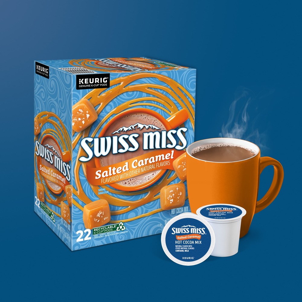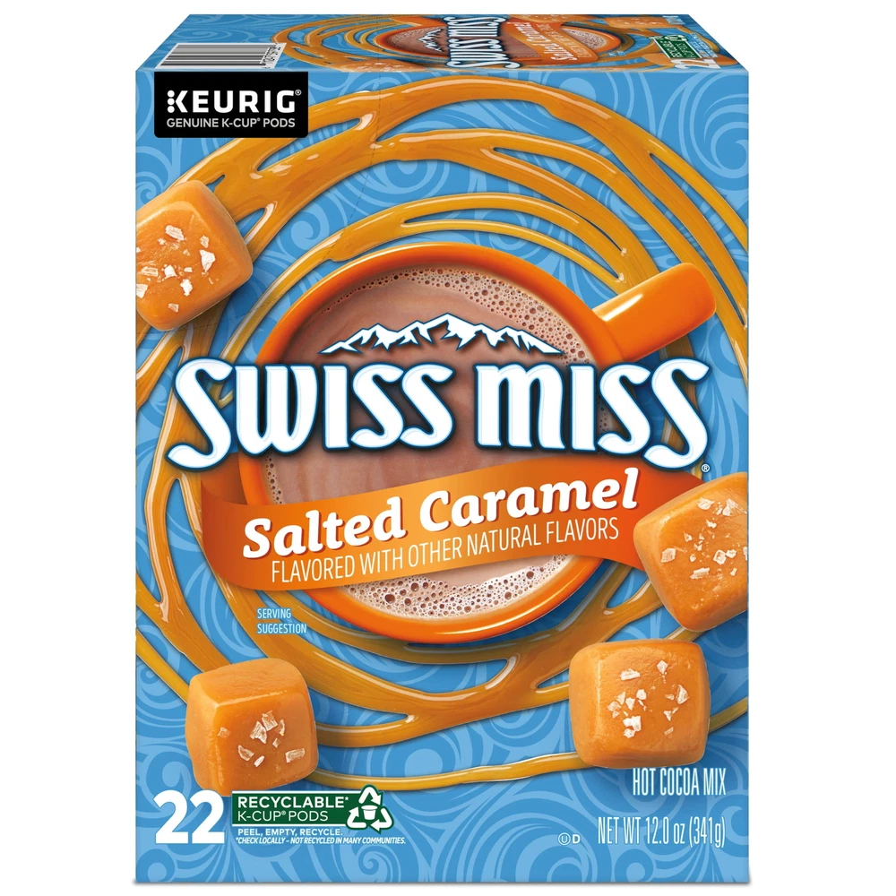 Nothing beats a cup of the delicious tasting Swiss Miss® Salted Caramel warm hot cocoa on a cold winter night! Now you can enjoy the sweet taste of chocolaty cocoa and smooth caramel flavor whenever you’re in the mood for a simple yet delicious treat that adds warmth to any moment. Create a cozy new family tradition or simply enjoy a quiet moment alone when you wrap your hands around a warm mug of Swiss Miss Salted Caramel Hot Cocoa. Swiss Miss has been creating the taste of hot chocolate since 1961 in a real dairy in Menomonie, Wisconsin. Made with dried milk and premium imported cocoa, each K-Cup® pod holds the perfect amount of Swiss Miss® Salted Caramel Hot Cocoa, creating a rich indulgent taste to sip and savor any time of day. Compatible with all Keurig Single Serve K-Cup® Pod Coffee Makers, Swiss Miss Salted Caramel Hot Cocoa is now easier to enjoy than ever before. RECYCLABLE* K-CUP® PODS: Simple. Delicious. And Recyclable. Enjoy the same great-tasting coffee you know and love, and when you’re done just peel, empty and recycle. *Check locally, not recycled in all communities. Packaging may vary. HOT COCOA: Now you can enjoy the sweet taste of cocoa whenever you’re in the mood for a simple let deliciously chocolaty treat that adds warmth to any moment TASTE OF REAL: Swiss Miss® Milk Hot Cocoa is made with premium imported cocoa and dried milk TRADITIONAL TREAT: Create a cozy new family tradition or continue an existing one when you wrap your hands around a warm mug of Swiss Miss® Salted Caramel Hot Cocoa ONE TOUCH: Swiss Miss® Hot Cocoa is compatible with all Keurig Single Serve K-Cup Pod Coffee Makers