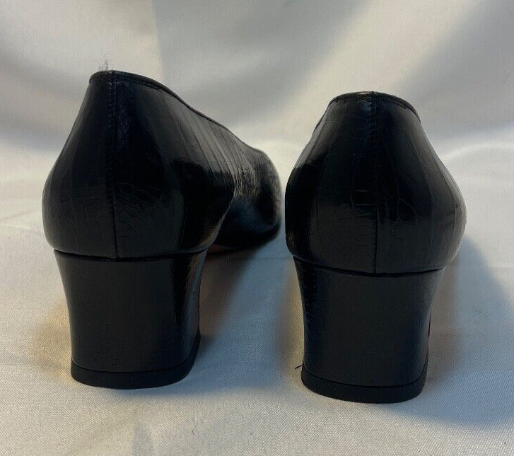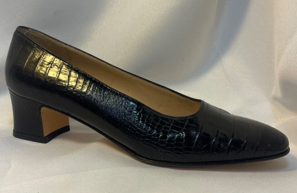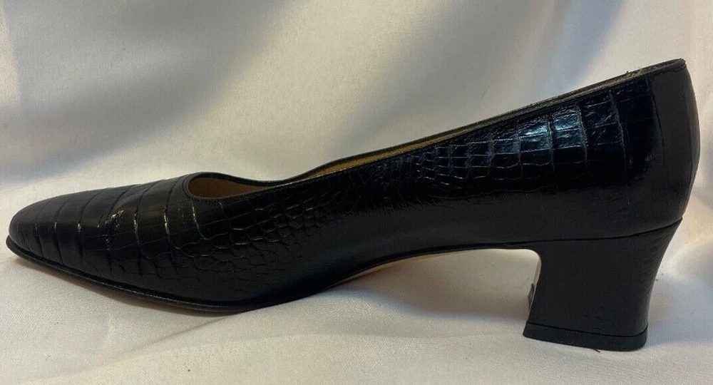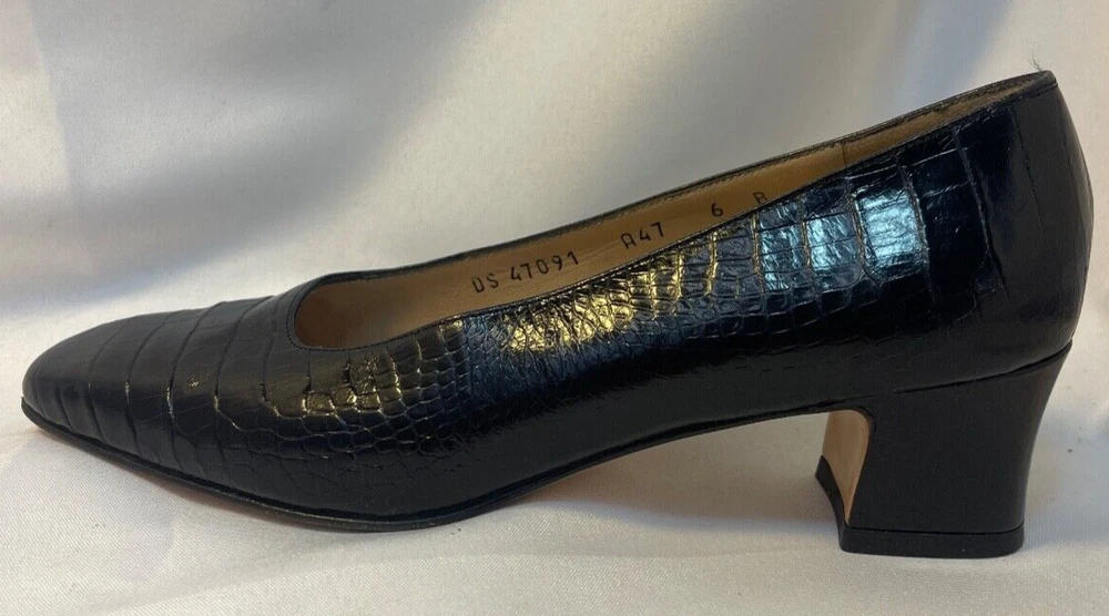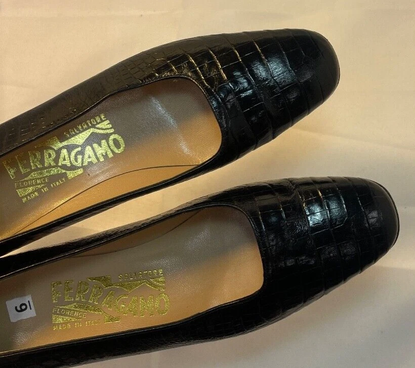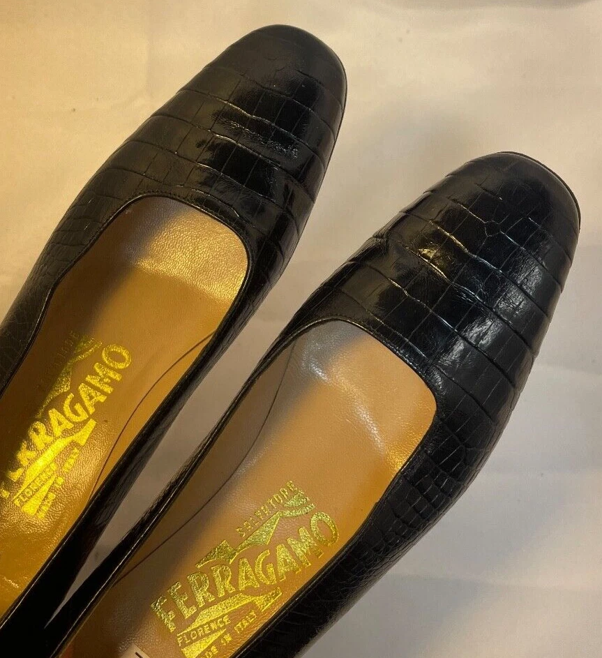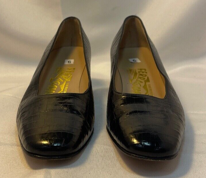 Salvatore Ferragamo Black Leather Croc Print Low Heel Brand: Salvatore Ferragamo Overall Condition: Excellent. See pictures for details. Materials: Leather Shipped with USPS Priority, Flat Rate or, when possible, First Class Mail. Elevate your style with these Salvatore Ferragamo Black Leather Croc Print Low Heels in size 6. Crafted from high-quality black leather with a luxurious croc print, these heels offer a sophisticated yet modern look. The low heel provides comfort for all-day wear, making them perfect for both work and casual outings. Pre-owned and in excellent condition, they are clean and ready to add a touch of elegance to any outfit. Don’t miss the opportunity to own this timeless pair from a renowned designer! Details for Shopper Size: 6 Shoes Width: 3 inches Heel Height: 2 inches Heel Type: Block Toe Style: Square Toe Payment Policies We accept payment through PayPal, credit card, and debit card. Please note that the item may be relisted if payment is not received within the 10 day period. Shipping Policies Delivery estimates will be displayed at checkout. In-store pickup is also available if you would like to visit us in store. We ship to Continental United States only. Terms of Sale Each item we sell is unique. There are no exchanges for the same item available. All items are carefully inspected by My Sister’s Closet of Monroe County’s quality control team prior to shipping. Please carefully review item details. If you have questions, please message us regarding the item before purchasing. Note: Due to the different monitor and light effects, the actual color of the item shown might be slightly different from the color in pictures. Return Policy We strive to describe and measure our items accurately. If your order is not what you expected, we accept returns under the following conditions: The item was not as described as listed The wrong item was shipped. The item does not fit. If the wrong item was shipped, we will attempt to replace it with the item originally ordered. Please note - items not returned in the exact same condition, with tags attached, may be subject to a partial refund to account for loss of the item’s value. Please refer to eBay Return policy for more details. You are covered by the eBay Money Back Guarantee if you receive an item that is not described as listed. Return Requirements: The buyer must return the item within 30 days of receipt. Buyer is responsible for return shipping charges. The item(s) must be returned in the original condition, unworn, with tags attached. Thank you for shopping with us! A little bit more about us… My Sister’s Closet is a nonprofit serving women in poverty since 1998. Our mission is to help women move closer to economic self-sufficiency by providing essential career development tools. This includes job training, mentoring, advocacy services, and professional attire for job interviews to help them find employment. We have helped over 2500 women thus far. Most clients we serve have been dealing with homelessness, domestic violence, illness, divorce, job loss, economic recovery and/or lack basic education. Visit Our eBay Store