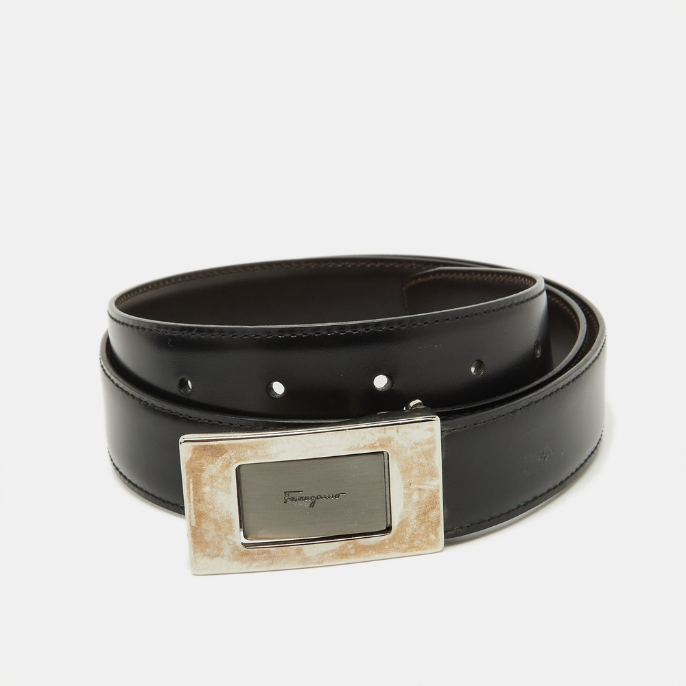 Elevate your ensemble with this Italian crafted dual tone belt, designed for the discerning gentleman. This accessory offers a luxurious touch with its exquisite black and dark brown leather, seamlessly adjustable for a perfect fit. The polished buckle adds a sophisticated finish, reflecting Salvatore Ferragamos renowned attention to detail and timeless elegance. Ideal for those who appreciate quality, this belt effortlessly complements both formal and casual settings, making it an essential addition to any wardrobe.Certified by The Luxury Closet - This item has gone through a detailed authentication process overseen by our experts. We offer a lifetime guarantee of authenticity on all our items. Import duties, taxes and charges are not included in the item price. These charges are the buyers responsibility. Please check with your country’s customs office to determine what these additional cost will be prior to buying. Our eBay Store About Us Contact Us Add to Favorite Sellers Salvatore Ferragamo Black/Dark Brown Leather Cut to Size Buckle Belt $165 Elevate your ensemble with this Italian crafted dual tone belt, designed for the discerning gentleman. This accessory offers a luxurious touch with its exquisite black and dark brown leather, seamlessly adjustable for a perfect fit. The polished buckle adds a sophisticated finish, reflecting Salvatore Ferragamos renowned attention to detail and timeless elegance. Ideal for those who appreciate quality, this belt effortlessly complements both formal and casual settings, making it an essential addition to any wardrobe. Product Details Brand Color Black Dimensions Height: 3 cm, Length: 90 cm Material Leather Size Outsole Width Outsole Length Heel Height Includes The Luxury Closet Packaging Certified by The Luxury Closet This item has gone through a detailed authentication process overseen by our experts. We offer a lifetime guarantee of authenticity on all our items. How We Check The in-house team of experts at The Luxury Closet is highly trained to verify the authenticity and the condition of the luxury products. They ensure that only 100% authentic items are put on sale.The evaluation process is unique with its own mix of assessment criteria and differs according to the category. Each item is evaluated based on the following combination of hallmarks, hardware, stitching, symmetry, material, craftsmanship, stamping, codes, hologram stickers, and packaging. Our authenticators also check if the items have been modified or amended (e.g., aftermarket diamonds, replaced batteries, repaired bags, etc.) International Buyers Import duties, taxes and charges are not included in the item price. These charges are the buyers responsibility. Please check with your country’s customs office to determine what these additional cost will be prior to buying.