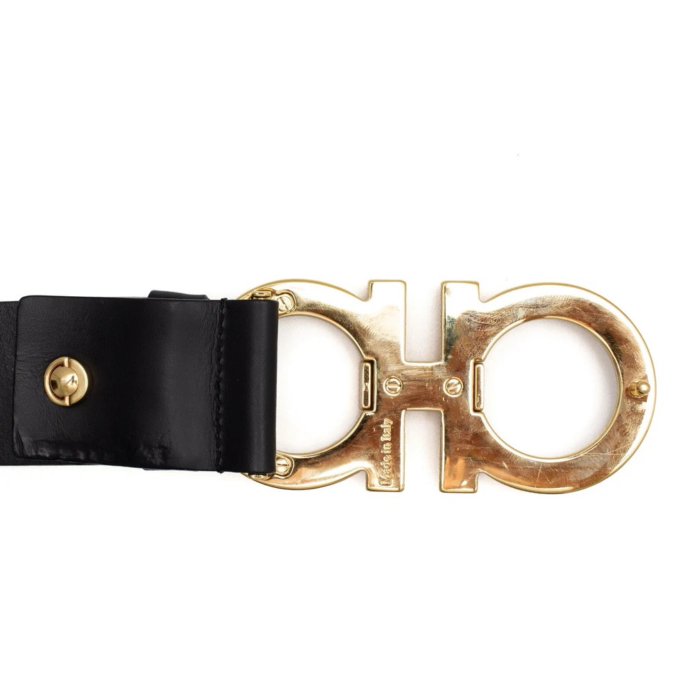 Salvatore Ferragamo Men’s Black Leather Gancini Wide Belt Size: 40 - Size: 40 45’’ x 1.8 ’’ x Buckle 4.9’’ - 8/10 Good Condition With Slight Signs of Usage - 100% Authentic - 100% Leather - Made In Italy - Big Brass Buckle - Minimalistic Design - Famous Brand - Premium Quality - Attention To Details - Looks Spectacular