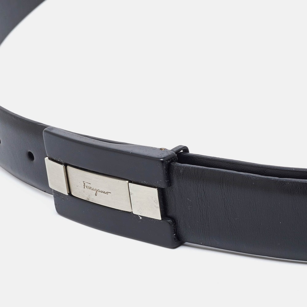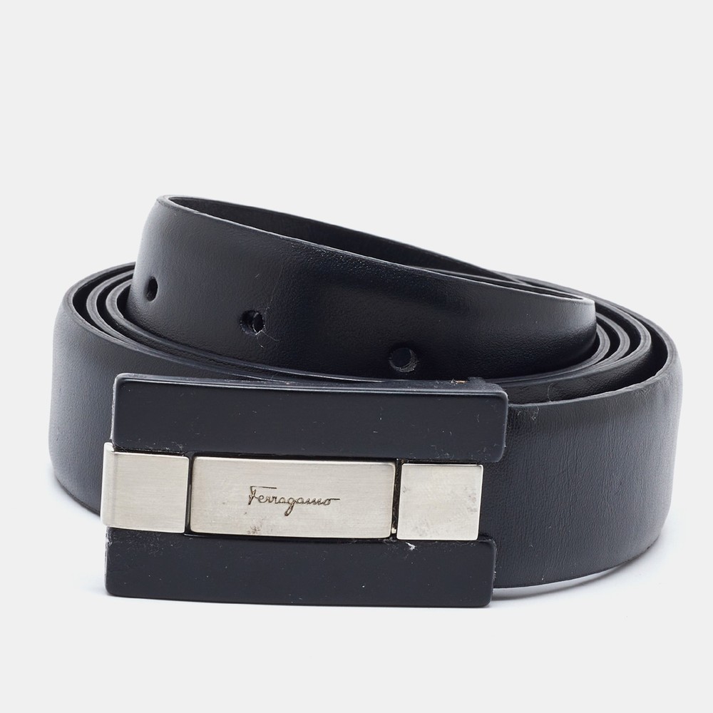 Salvatore Ferragamo Black Leather Buckle Belt 85cm for Men