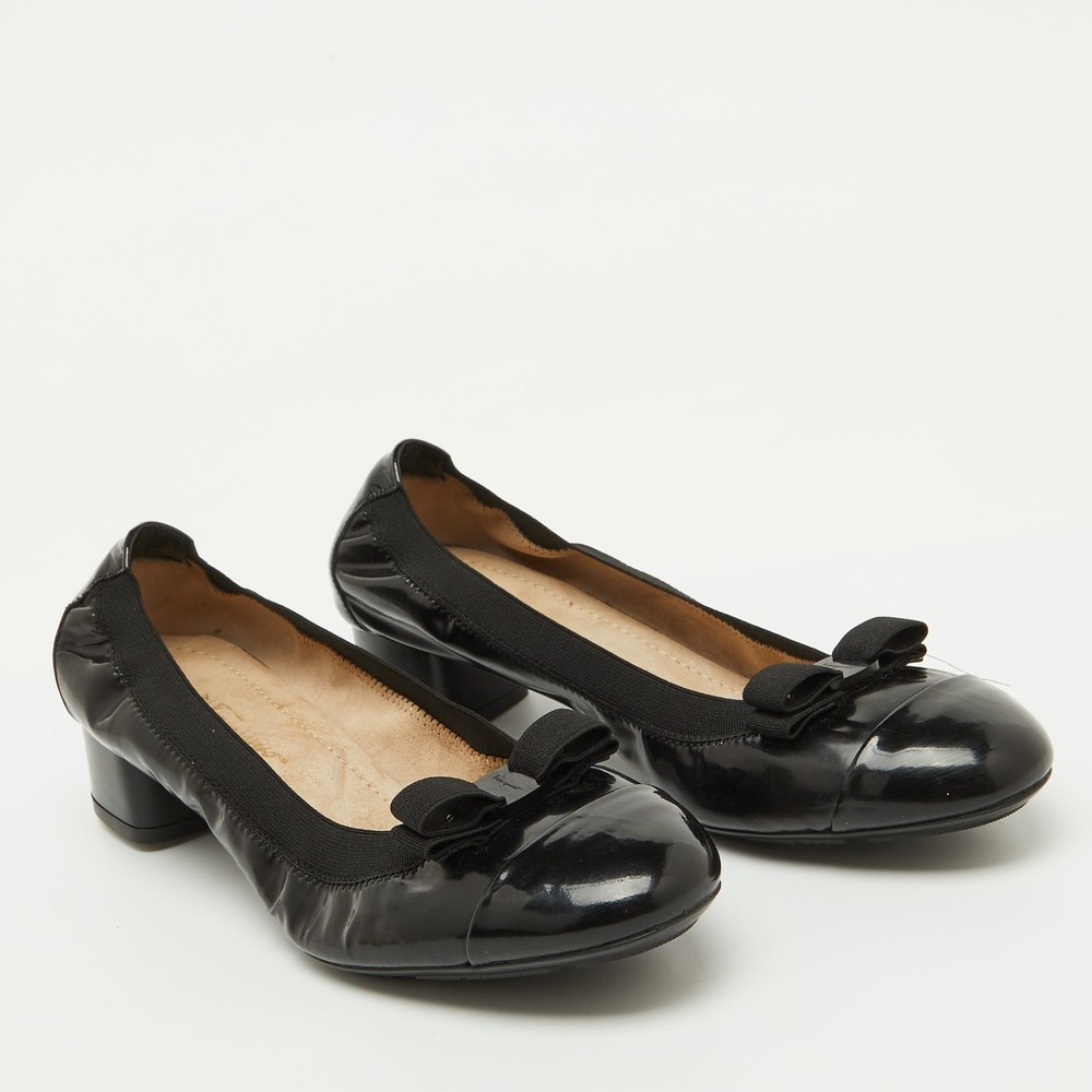 Classic and timeless, these Salvatore Ferragamo pumps showcase a glossy black patent leather finish. The signature Vara bow and comfortable block heel make them a perfect blend of sophistication and practicality. A go to choice for effortless everyday elegance.Certified by The Luxury Closet - This item has gone through a detailed authentication process overseen by our experts. We offer a lifetime guarantee of authenticity on all our items. Import duties, taxes and charges are not included in the item price. These charges are the buyers responsibility. Please check with your country’s customs office to determine what these additional cost will be prior to buying. Our eBay Store About Us Contact Us Add to Favorite Sellers Salvatore Ferragamo Black Patent Leather Vara Bow Block Heel Pumps Size 39.5 $171.6 Classic and timeless, these Salvatore Ferragamo pumps showcase a glossy black patent leather finish. The signature Vara bow and comfortable block heel make them a perfect blend of sophistication and practicality. A go to choice for effortless everyday elegance. Product Details Brand Color Black Dimensions Material Patent Leather Size 39.5 Outsole Width 8.5 cm Outsole Length 24.5 cm Heel Height 3.5 cm Includes The Luxury Closet Packaging Certified by The Luxury Closet This item has gone through a detailed authentication process overseen by our experts. We offer a lifetime guarantee of authenticity on all our items. How We Check The in-house team of experts at The Luxury Closet is highly trained to verify the authenticity and the condition of the luxury products. They ensure that only 100% authentic items are put on sale.The evaluation process is unique with its own mix of assessment criteria and differs according to the category. Each item is evaluated based on the following combination of hallmarks, hardware, stitching, symmetry, material, craftsmanship, stamping, codes, hologram stickers, and packaging. Our authenticators also check if the items have been modified or amended (e.g., aftermarket diamonds, replaced batteries, repaired bags, etc.) International Buyers Import duties, taxes and charges are not included in the item price. These charges are the buyers responsibility. Please check with your country’s customs office to determine what these additional cost will be prior to buying.