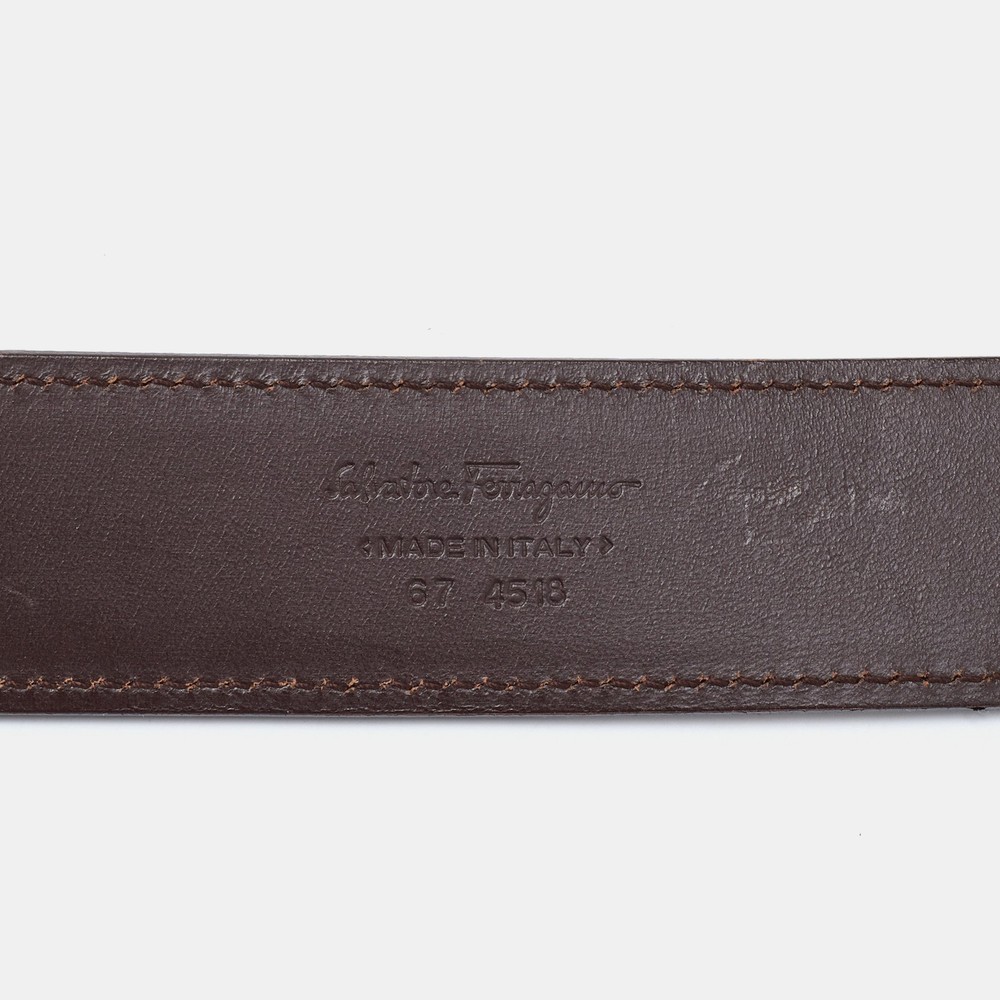 Exuding timeless elegance, this Salvatore Ferragamo belt in rich brown leather is finished with a polished buckle for a refined touch. Perfect for both casual and formal attire, it’s a must have for the modern gentleman.Certified by The Luxury Closet - This item has gone through a detailed authentication process overseen by our experts. We offer a lifetime guarantee of authenticity on all our items. Import duties, taxes and charges are not included in the item price. These charges are the buyers responsibility. Please check with your country’s customs office to determine what these additional cost will be prior to buying. Our eBay Store About Us Contact Us Add to Favorite Sellers Salvatore Ferragamo Brown Leather Buckle Belt 85CM $135.3 Exuding timeless elegance, this Salvatore Ferragamo belt in rich brown leather is finished with a polished buckle for a refined touch. Perfect for both casual and formal attire, it’s a must have for the modern gentleman. Product Details Brand Color Brown Dimensions Width: 3.5 cm, Length: 85 cm Material Leather Size 85CM Outsole Width Outsole Length Heel Height Includes Original Dustbag Certified by The Luxury Closet This item has gone through a detailed authentication process overseen by our experts. We offer a lifetime guarantee of authenticity on all our items. How We Check The in-house team of experts at The Luxury Closet is highly trained to verify the authenticity and the condition of the luxury products. They ensure that only 100% authentic items are put on sale.The evaluation process is unique with its own mix of assessment criteria and differs according to the category. Each item is evaluated based on the following combination of hallmarks, hardware, stitching, symmetry, material, craftsmanship, stamping, codes, hologram stickers, and packaging. Our authenticators also check if the items have been modified or amended (e.g., aftermarket diamonds, replaced batteries, repaired bags, etc.) International Buyers Import duties, taxes and charges are not included in the item price. These charges are the buyers responsibility. Please check with your country’s customs office to determine what these additional cost will be prior to buying.