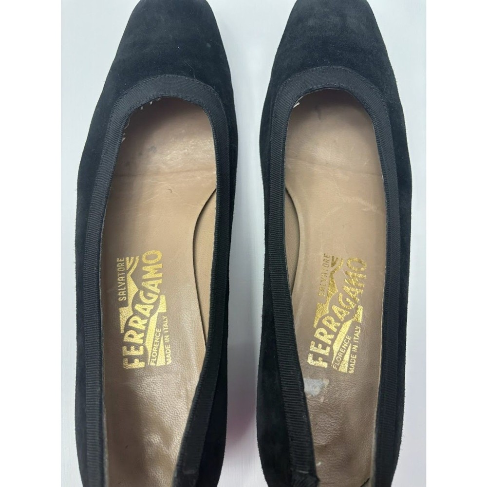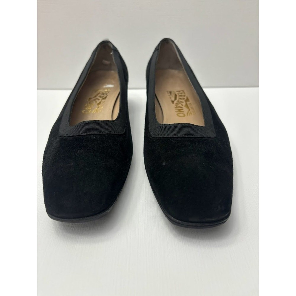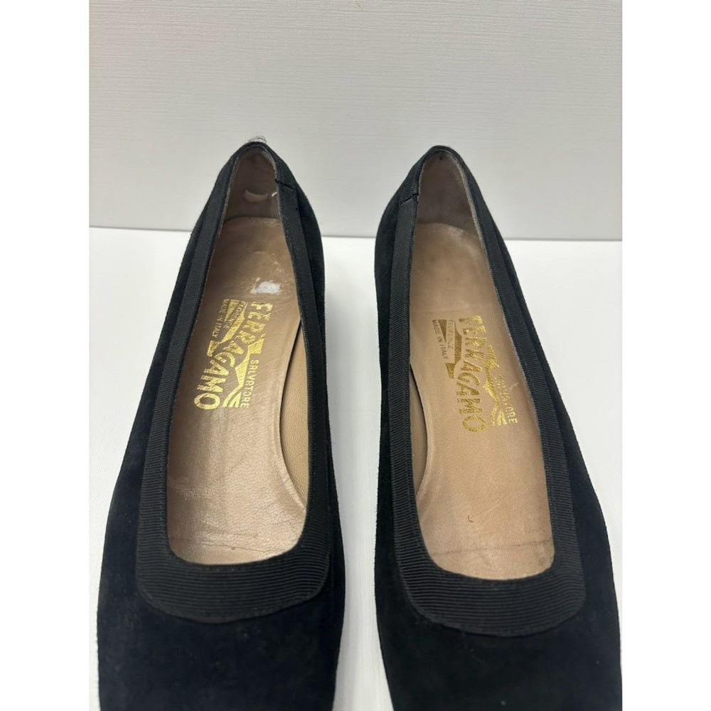 Salvatore Ferragamo Classic Office Pumps Heels Size 8.5 black suede Vintage Gorgeous shoes in great condition. looks like the soles have recently been replaced and not worn often since then. Ribbon like trim around the opening and suede body. Same or next day shipping, offers welcome!