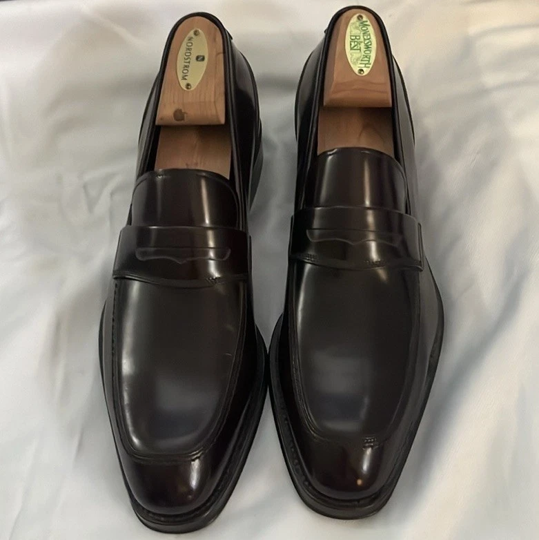 The Salvatore Ferragamo Dark Brown Leather Penny Loafers are a stylish and sophisticated choice for the modern man. Made in Italy with high-quality leather, these slip-on loafers feature a classic solid brown color with tasseled accents for added detail. The D width and leather lining provide comfort and a great fit, while the leather outsole ensures durability. Perfect for a dressy occasion or a stylish everyday look, these loafers are a timeless addition to any wardrobe.