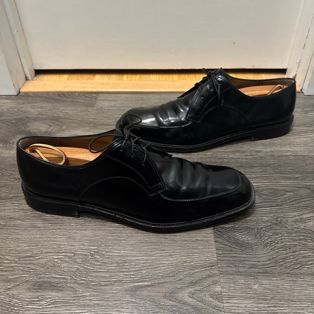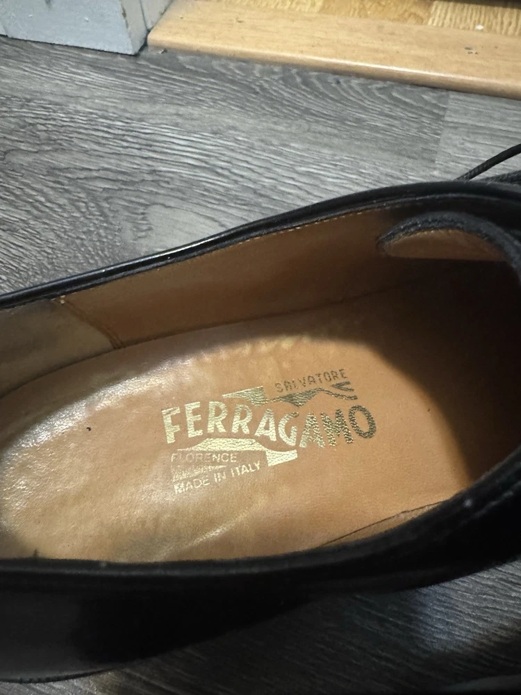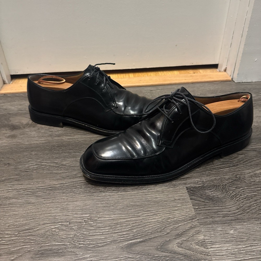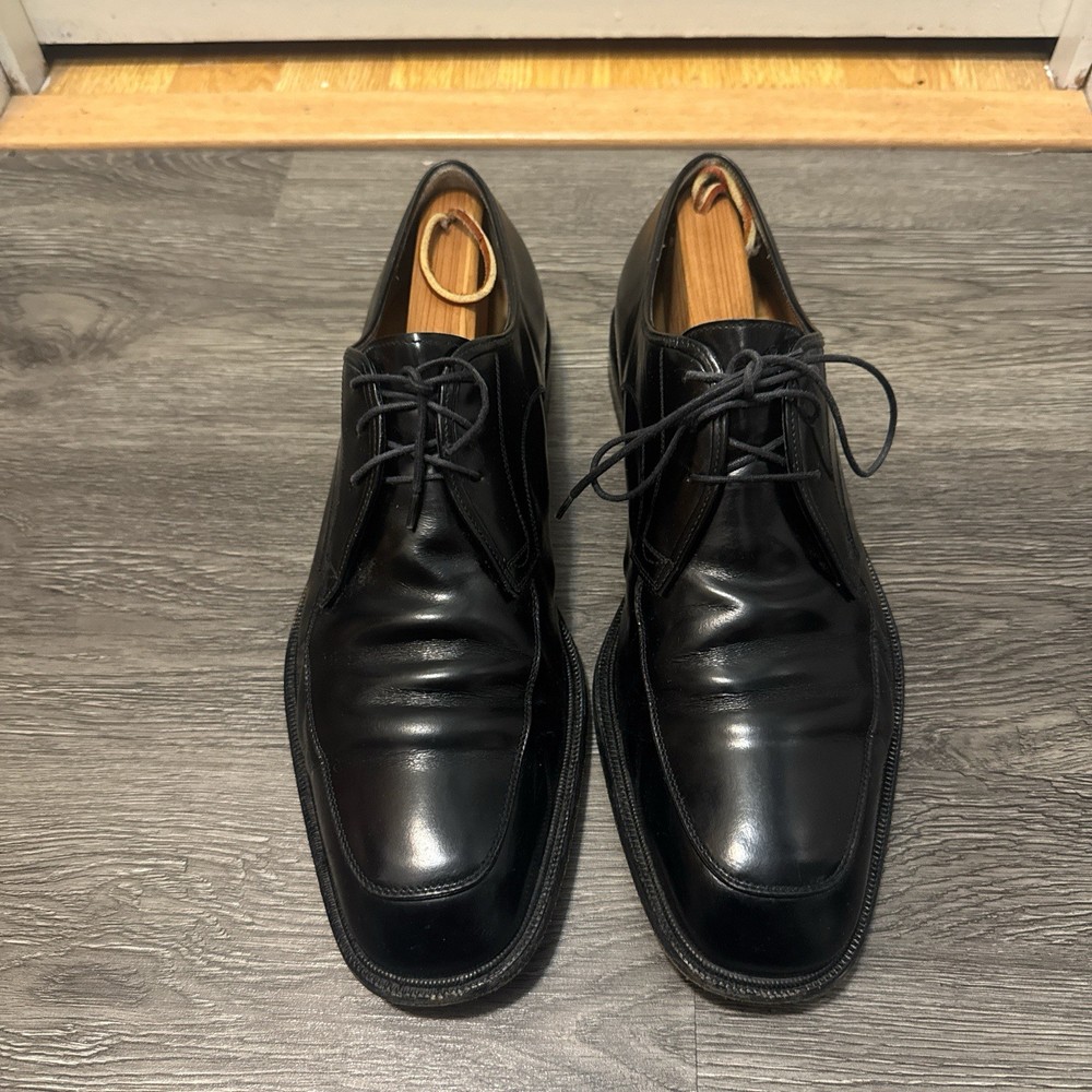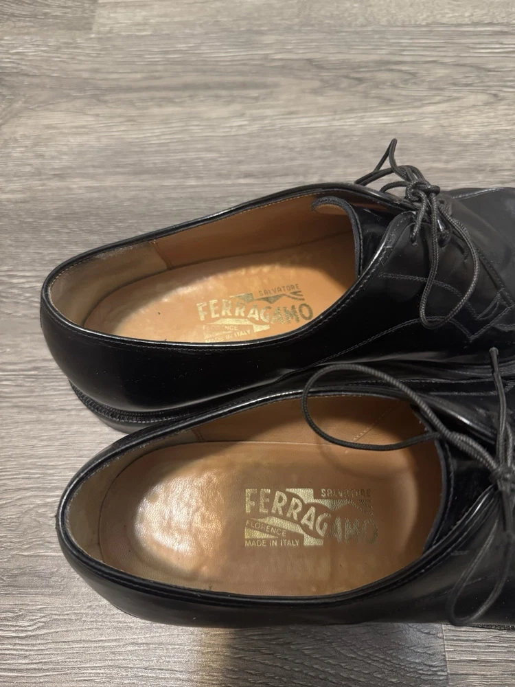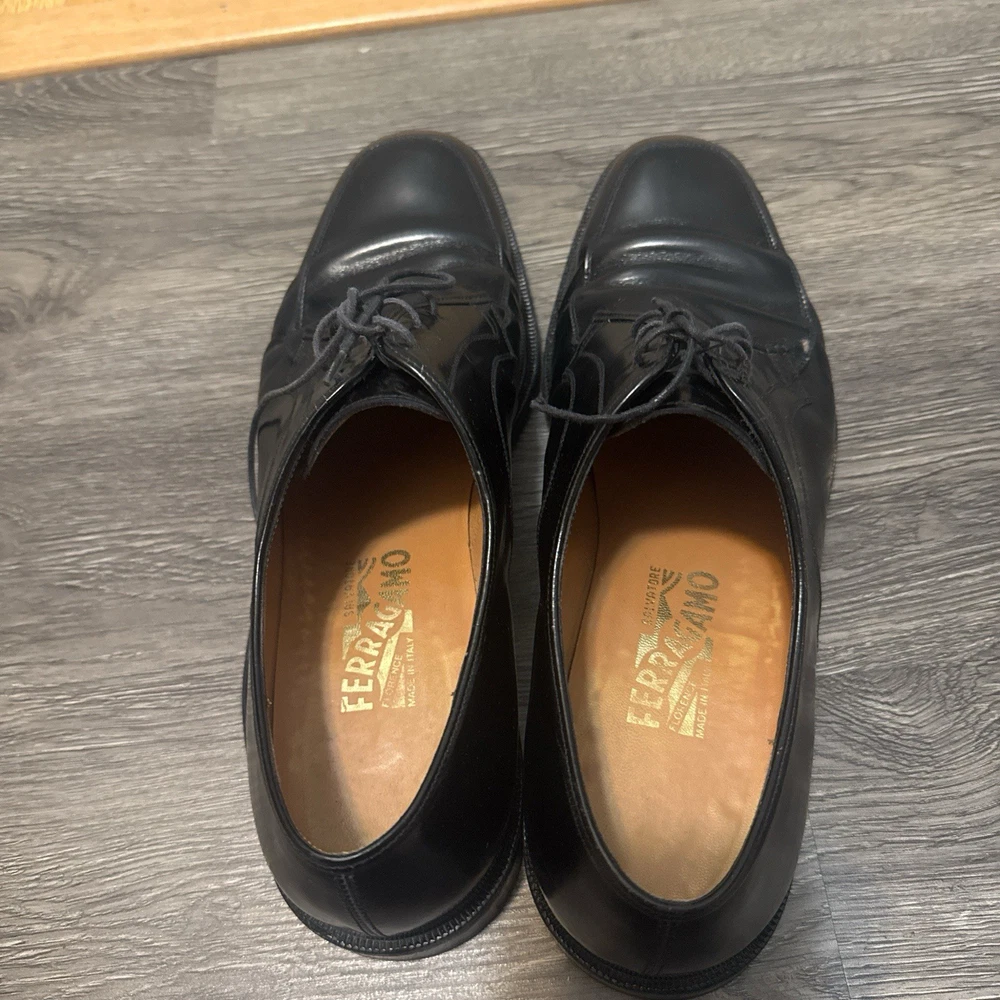 Salvatore Ferragamo Dress Shoes Mens 11 D Leather Oxford Lace Up Low Top Black Used Condition made in Italy Great Black Dress Shoe Does have some light wear shown overall nice shape #ferragamo #shoes #italy