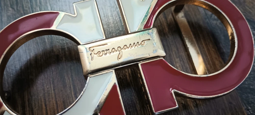 The Salvatore Ferragamo Gancini Gold Finish Red & White Belt Buckle is a luxurious accessory designed for men. Crafted from metal in Italy, this belt buckle showcases the brand's signature Gancini design with a gold finish and bold red and white colors. The high-quality materials and craftsmanship make it a stylish and sophisticated addition to any outfit, perfect for those looking to elevate their wardrobe with a touch of elegance and prestige.