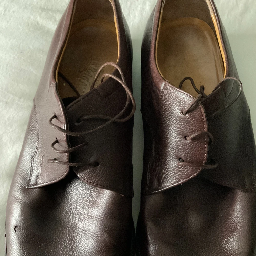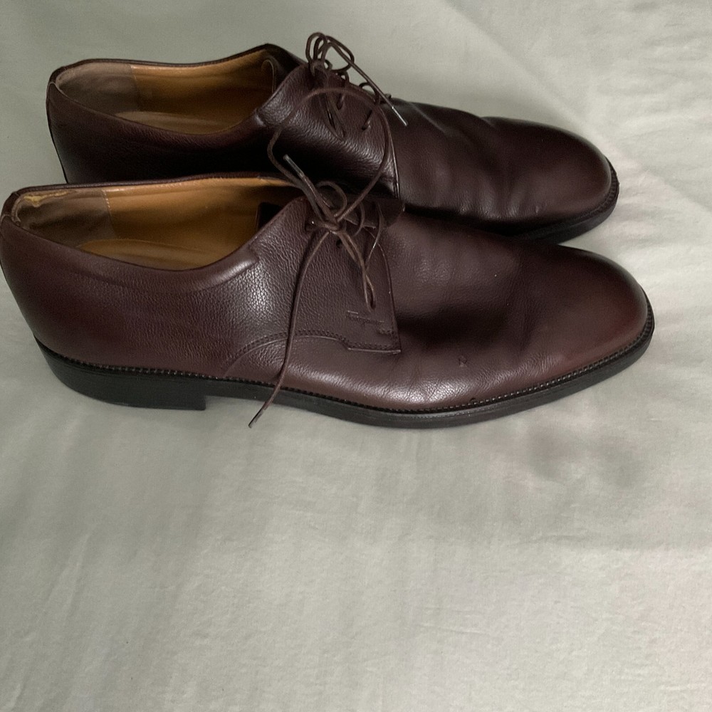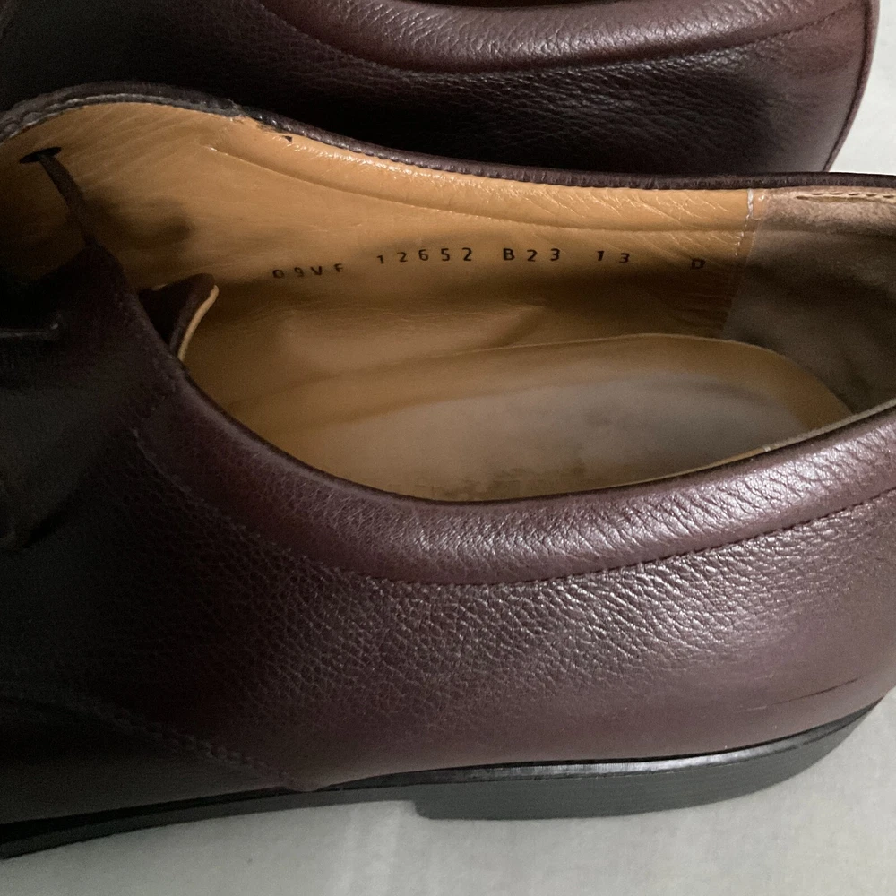Salvatore Ferragamo Mens Dress Shoe Tie up Brown, pebbled 13 D Preowned condition Defect to R outer area , wear to insole, see photo Please see photos for condition and measurements Color can vary from screen to screen and the actual color may look different in person From clean, smoke free home
