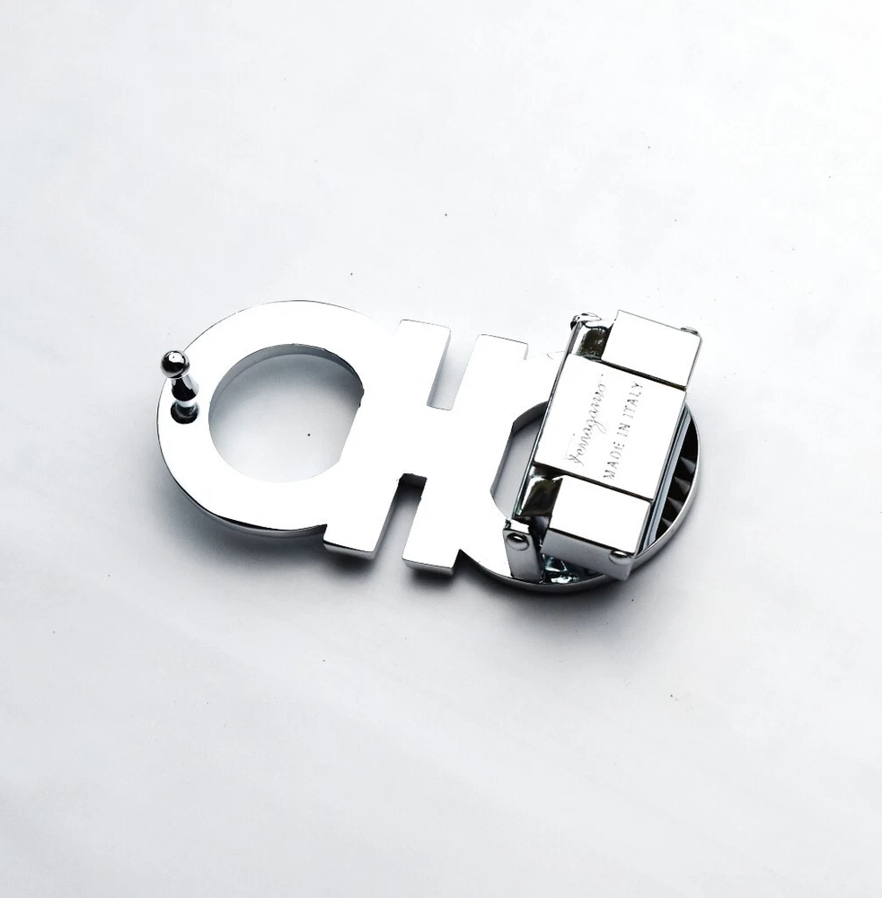 Salvatore Ferragamo Classic Alloy Belt Buckle for 34-35mm leather strap-Silver CONDITION : Mint,unused SIZE APPROX : 3.2" x 1.6" (8 cm x 4.0 cm) COLOR : Silver Only One Buckle Material : Alloy Due to the shooting light, angle, and monitor color difference, the actual object and the picture may be slightly different. SHIPPING BY USPS