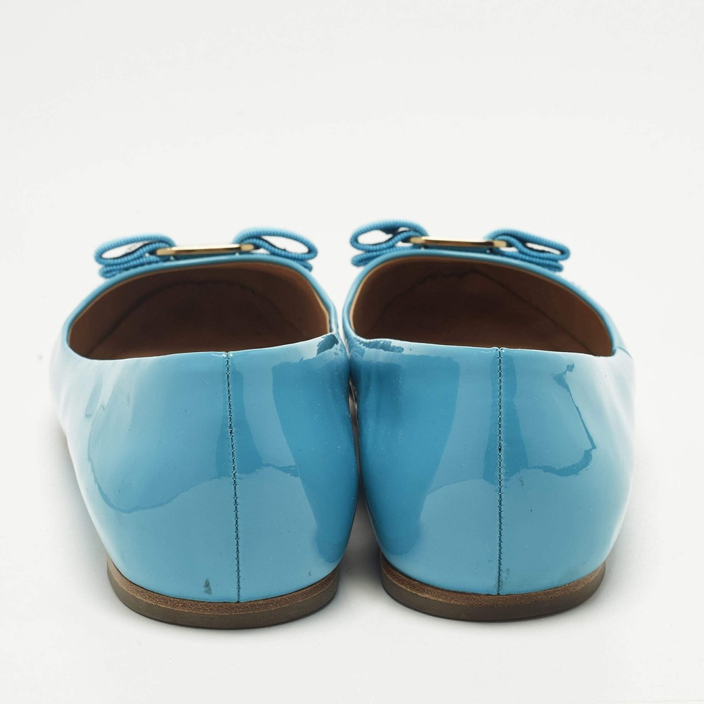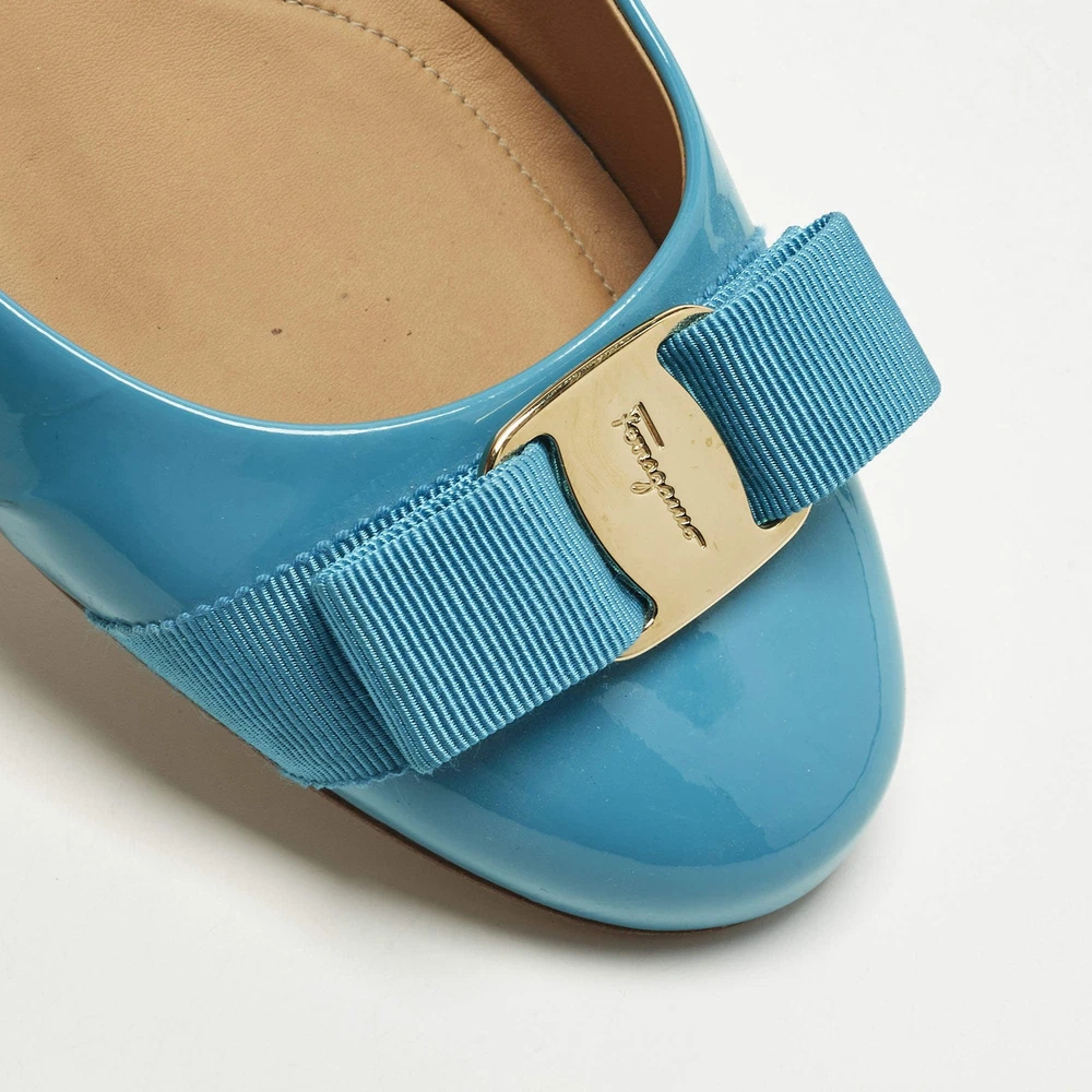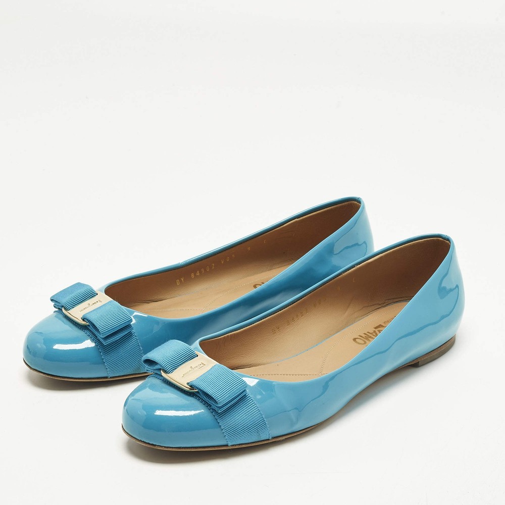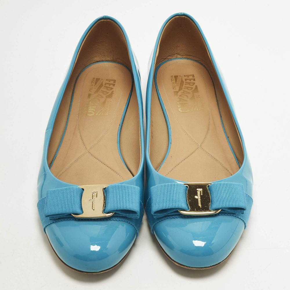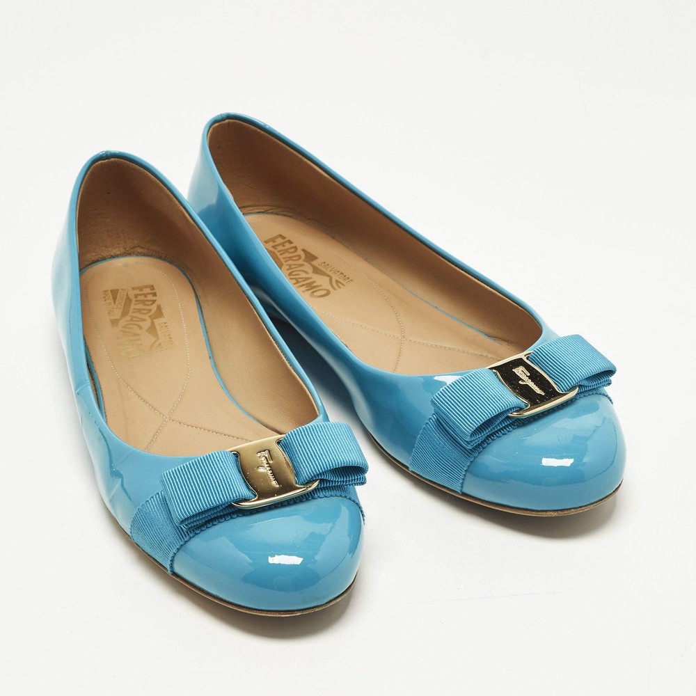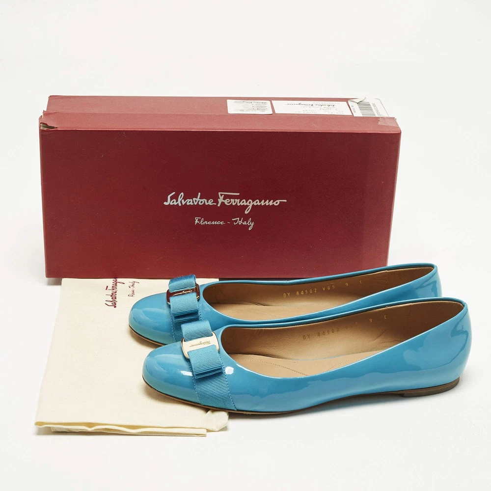 Our eBay Store About Us Contact Us Add to Favorite Sellers Salvatore Ferragamo Varina Size 39.5 Blue Patent Leather Ballet Flats Salvatore Ferragamo presents the Varina in glossy blue patent leather, finished with the classic bow and logo plaque. The low profile and soft interior make them easy for daily wear, while the rich blue shade adds a refined touch to neutral wardrobes. Product Details Brand Salvatore Ferragamo Color Blue Includes Original Dustbag, Original Box Outsole Length 26.5 cm Outsole Width 8.5 cm Size US 9 (EU 39.5/UK 6.5) Certified by The Luxury Closet This item has gone through a detailed authentication process overseen by our experts. We offer a lifetime guarantee of authenticity on all our items. How We Check The in-house team of experts at The Luxury Closet is highly trained to verify the authenticity and the condition of the luxury products. They ensure that only 100% authentic items are put on sale.The evaluation process is unique with its own mix of assessment criteria and differs according to the category. Each item is evaluated based on the following combination of hallmarks, hardware, stitching, symmetry, material, craftsmanship, stamping, codes, hologram stickers, and packaging. Our authenticators also check if the items have been modified or amended (e.g., aftermarket diamonds, replaced batteries, repaired bags, etc.) International Buyers Import duties, taxes and charges are not included in the item price. These charges are the buyers responsibility. Please check with your country’s customs office to determine what these additional cost will be prior to buying.