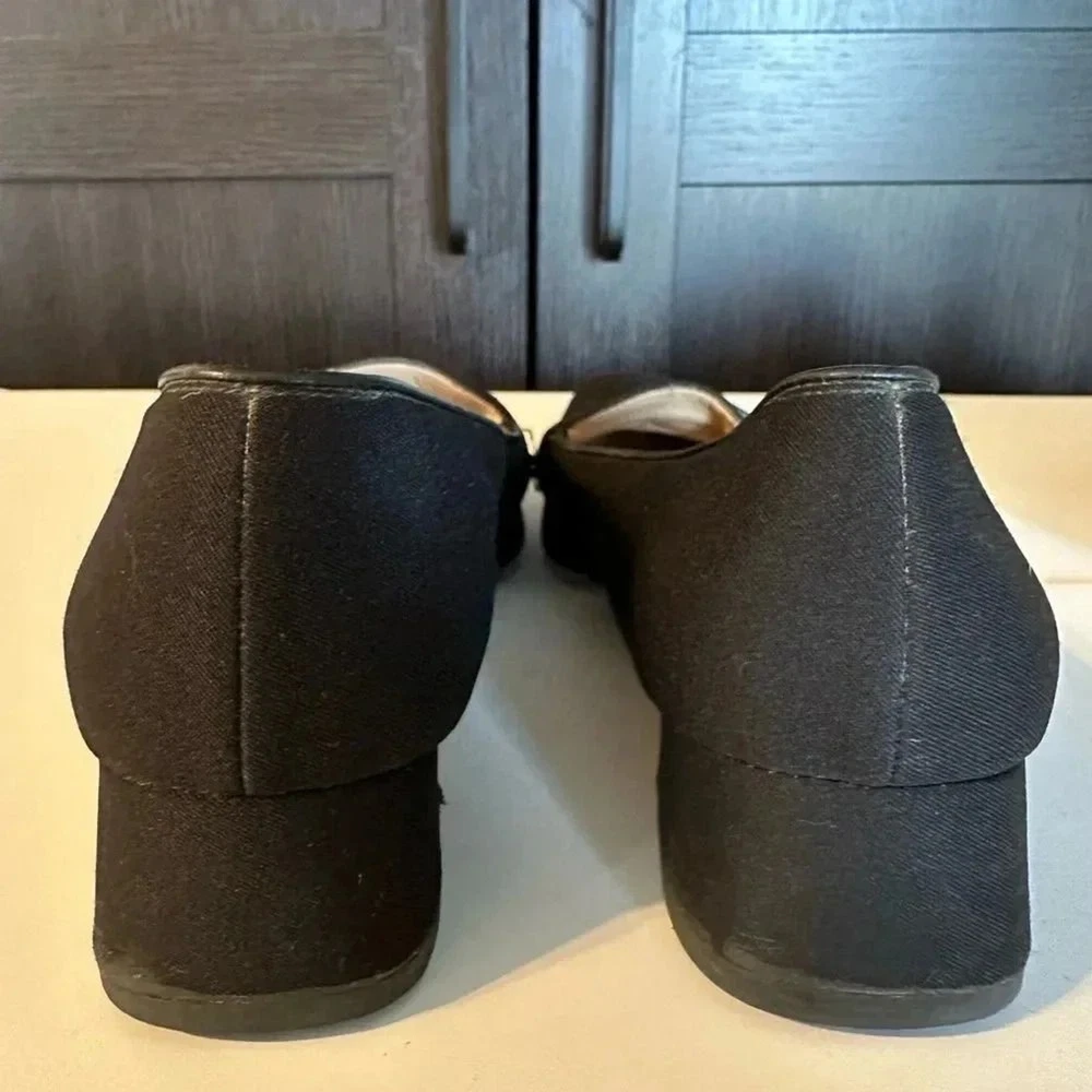Vintage and comes with original dust covers for each shoe. Brand: Salvatore Ferragamo Style: Loafer Flat Shoes Color: Black Shoe Width: C (standard) Pattern: Solid Closure: Slip On In good used condition. There are signs of wear but the structure of the shoe is excellent. ❤️ Five Star Seller 📬 Fast Shipping 🌱 Sustainable 🚫 Smoke and Fragrance Free Home