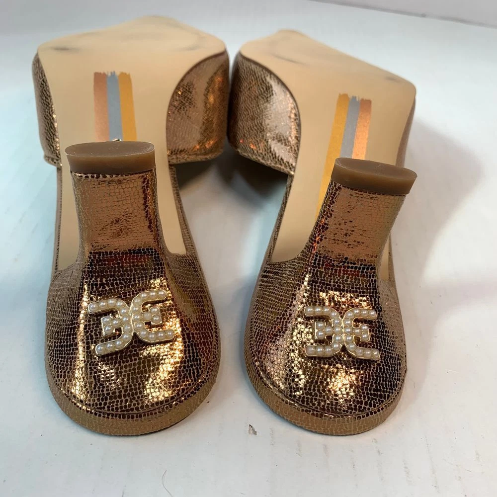 Sam Edelman Brit Luster Mules Kitten Heel in Deep Gold with Metallic Pearl Accent Size 9.5