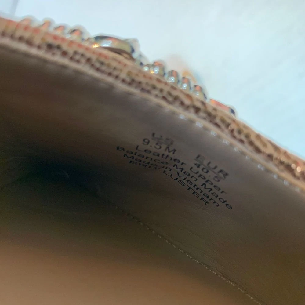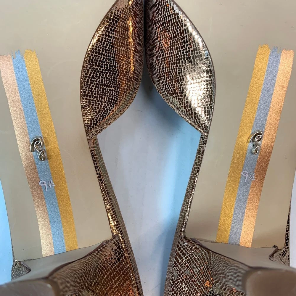 Size 9.5 Deep Gold Metallic color leather Heel height 2.25 inches Slip on