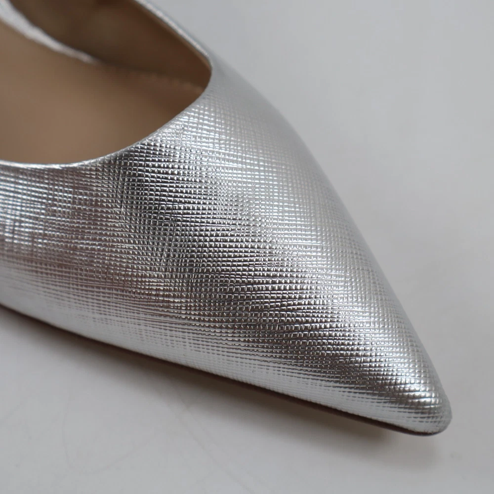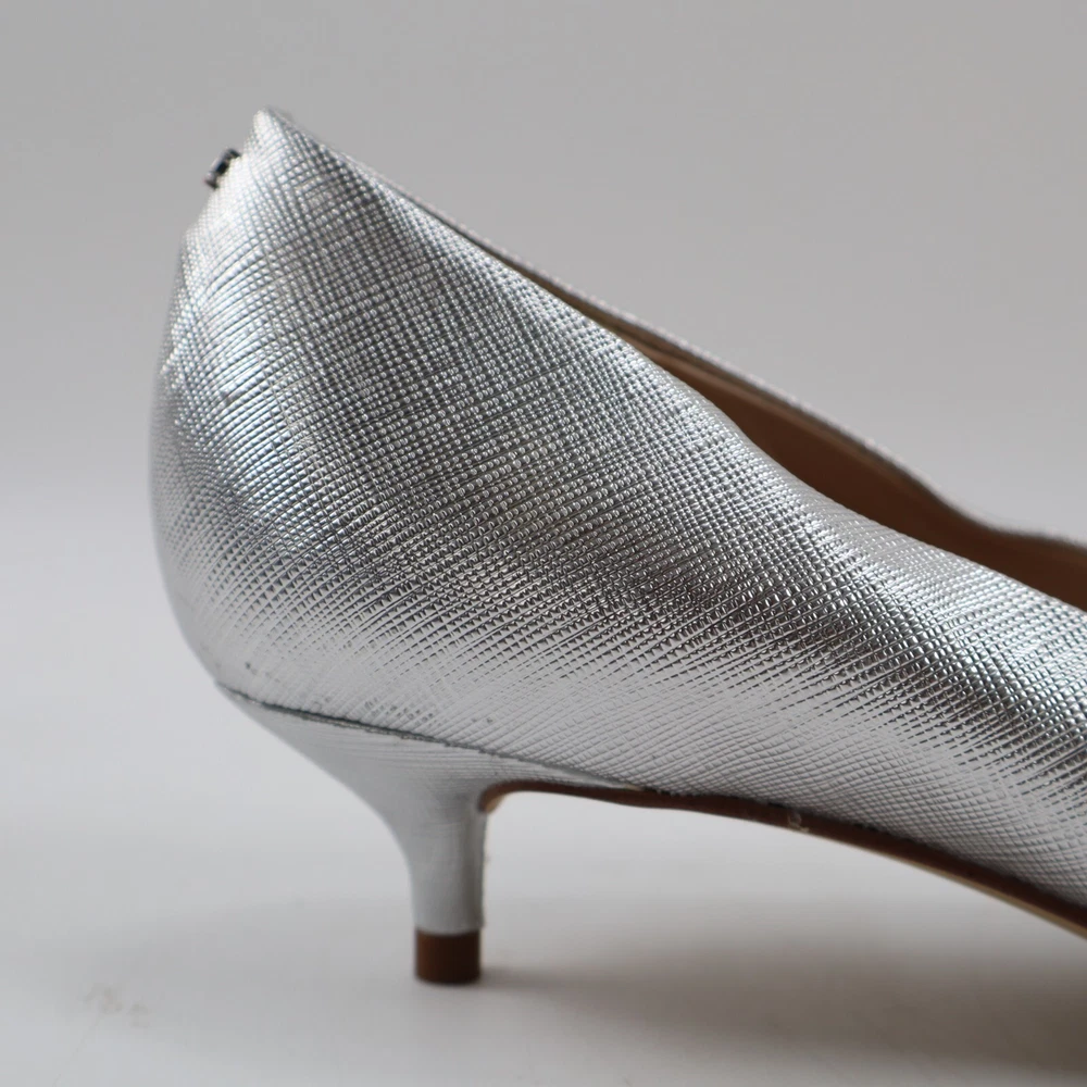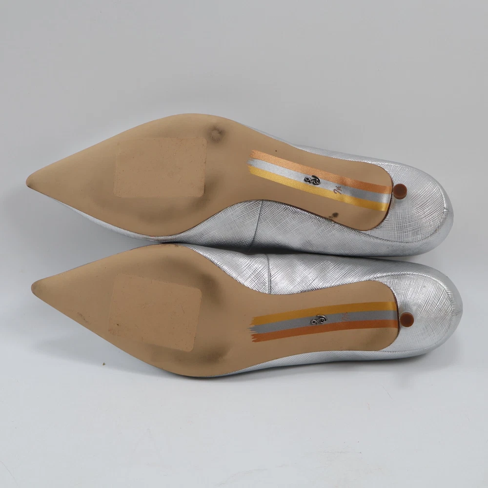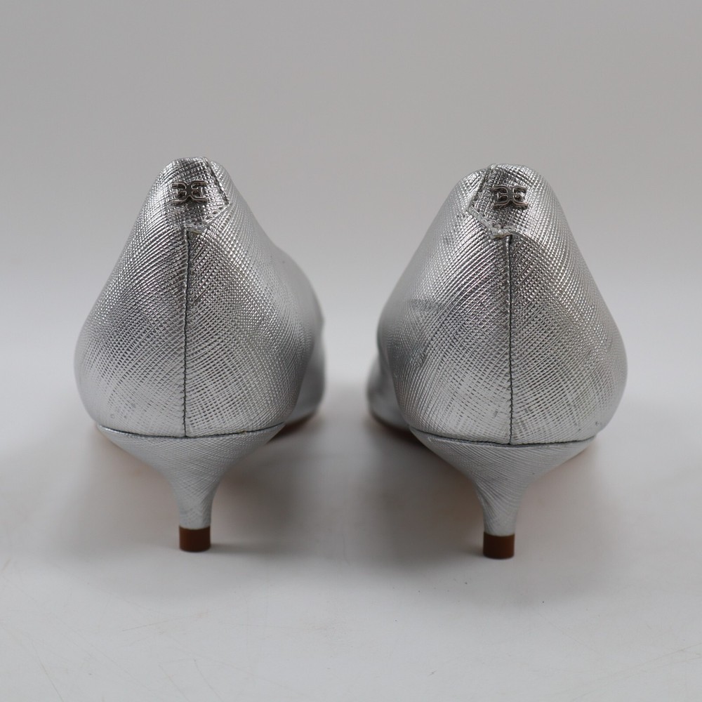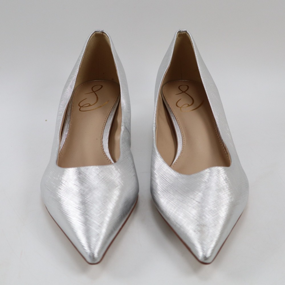 π CONDITION New NO BOX. Very good condition with minor imperfections: scuff on heel of the right shoe. See pictures for details. Color: Soft Silver MSRP: $140 100% authentic. Purchased through Nordstrom. π SIZING Size: 7.5 US / 38 EU π¦ SHIPPING We ship UPS Ground or USPS Ground Advantage. Items will be shipped from our warehouse in Dallas Texas within 1-3 business days. (We try our best to ship most packages within 1 day! π) Please allow sufficient time for the package to be delivered. (We are a small business and have no control over when the package gets delivered once we hand it off to the carrier. Thank you for your understanding!) β RETURNS We DO NOT accept returns on shoes, clothing and accessories. Please make sure you have the correct sizing before ordering. π¬ QUESTIONS? Feel free to ask any questions. I will respond fast! We try our best to describe every item accurately. But we are human after all! If we've made a mistake, please accept our sincere apologies and reach out to use right away. We will make it right! π DESCRIPTION Elevate your shoe game with these stunning Sam Edelman Franci Kitten Heel Pumps in Soft Silver. These pumps feature a pointed toe and slip-on closure, making them perfect for any occasion from parties to formal events or business meetings. The low kitten heel adds a touch of sophistication while still providing comfort for all-day wear. Crafted from high-quality leather and with a metal theme, these pumps are a must-have for any fashion-forward woman. The Franci model is designed with a solid pattern and a pointed toe shape, giving them a classic and timeless look. Available in UK Shoe Size 5 and US Shoe Size 7.5, these pumps are perfect for women who want to make a statement with their footwear.