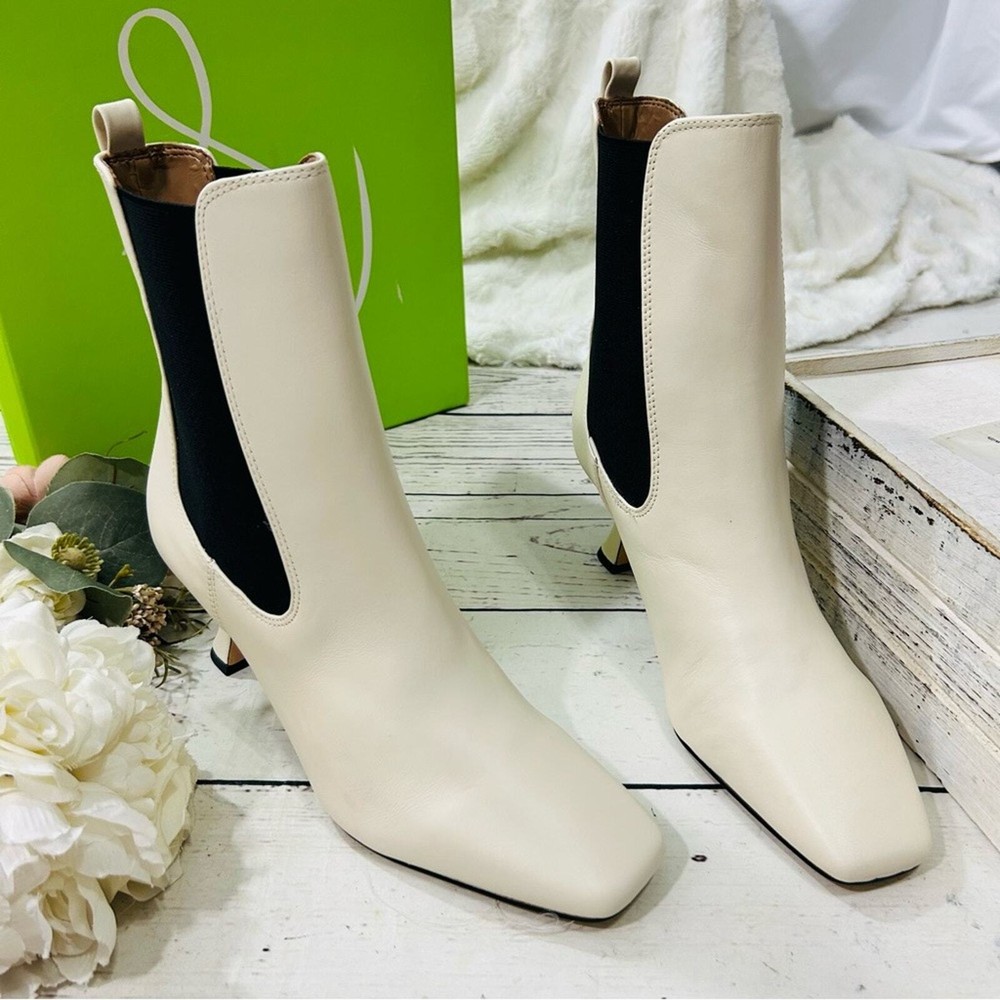 sam edelman lani leather Chelsea ankle booties NWT . Super cute. Size 8.5 . Ivory . Heel 3 inch . Brand new in box . Light price tag residue on outsole as shown in pictures. Shipped with USPS Priority Package, No returns but backed by eBay money back guarantee. If you have any other questions please contact seller . Please leave wonderful feedback once you are satisfied with the purchase, Thank you. Custom charges may apply for international purchases.