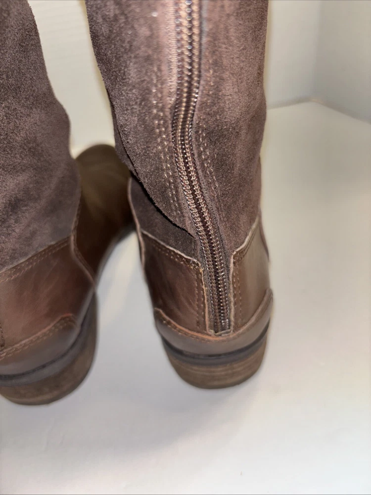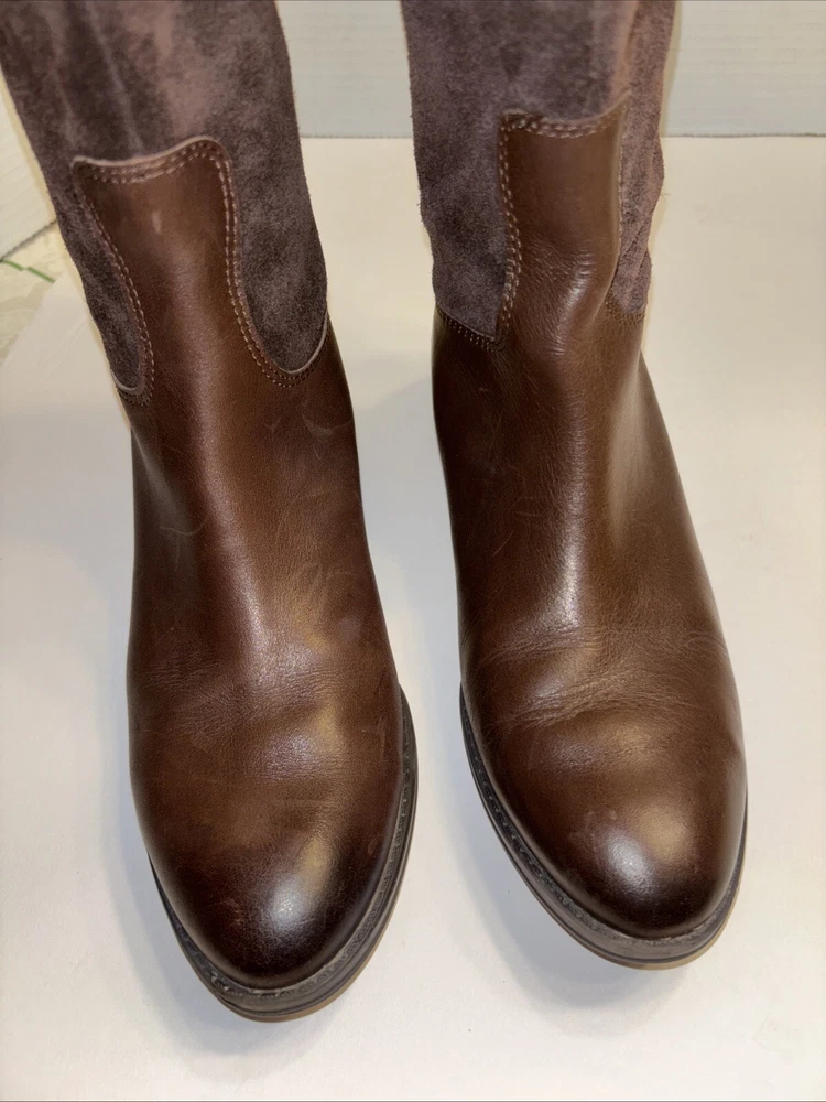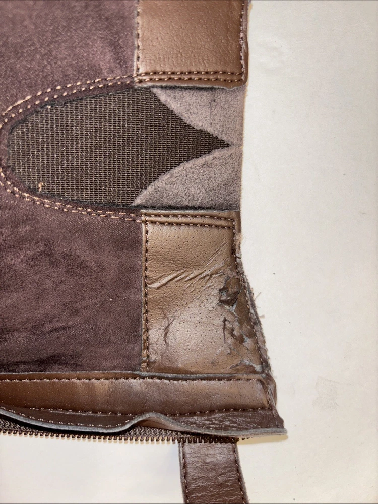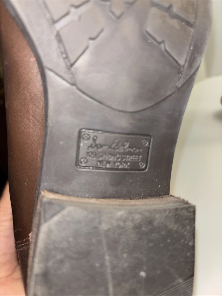 Please see pictures of wear and sizes. Left boot is 7 and right boot is 6.5