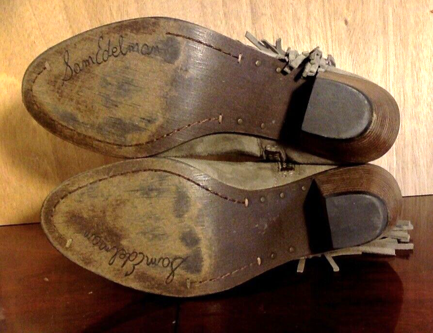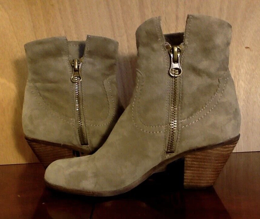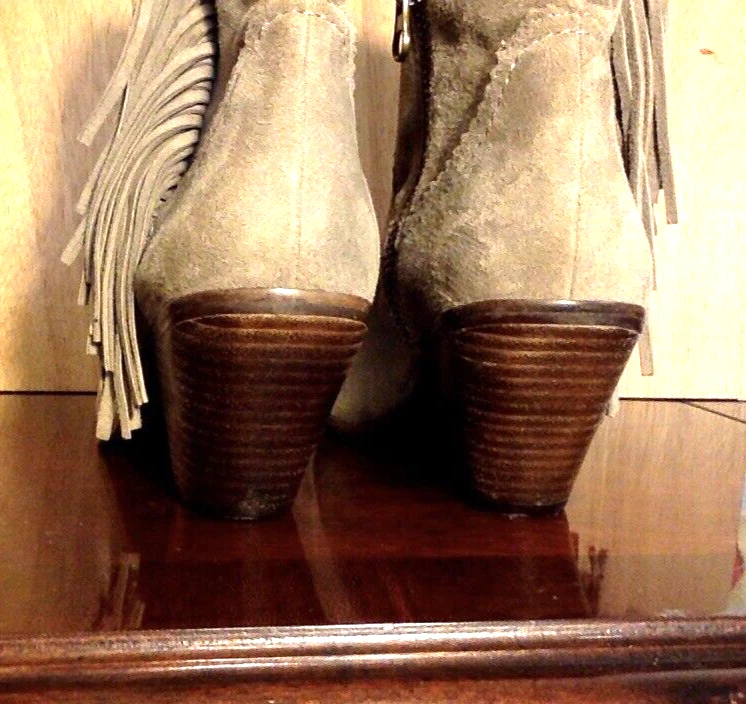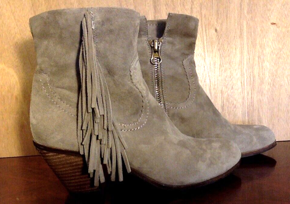 Taupe-grey size USA ladies 8. Very good lightly used condition, see photos. Pretty ankle boots, looks great worn with skirts or blue jeans for western or prairie styles. Ships via USPS priority mail, carefully boxed and insured. Thanks for looking, and enjoy!