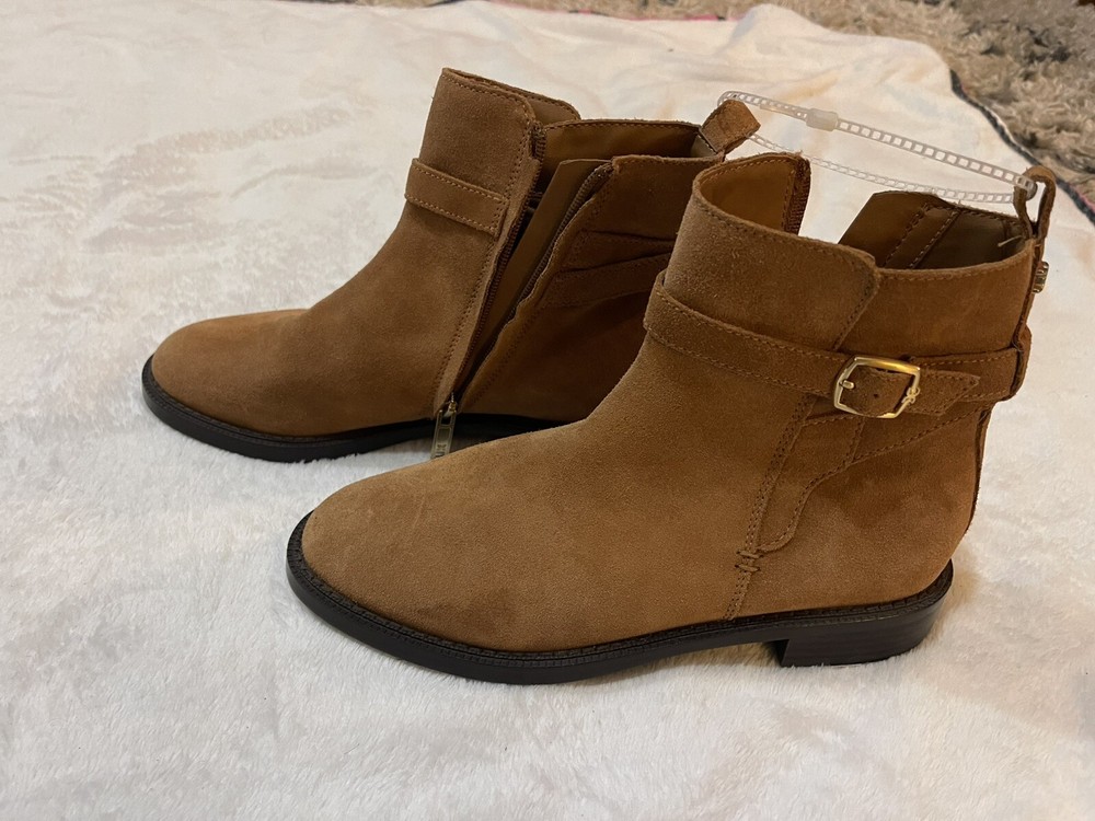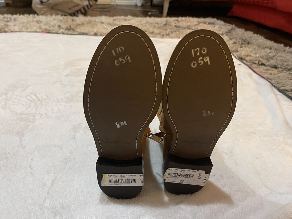 Step into effortless style with the Sam Edelman Nolynn Riding Boots, a must-have for any fashion-forward wardrobe. Crafted in a rich saddle suede and featuring a timeless solid brown color, these ankle boots are a versatile addition to both casual and dressy looks. The round toe design ensures a comfortable fit, making them ideal for day-long wear. The Nolynn boots are equipped with a convenient zipper closure, allowing for easy on and off. A chic low block heel maintains a sleek profile, while the robust accents of a zipper detail add a touch of edgy sophistication. Whether you're out for a ride or simply striding through your day, these size 8 boots offer the perfect blend of function and style.