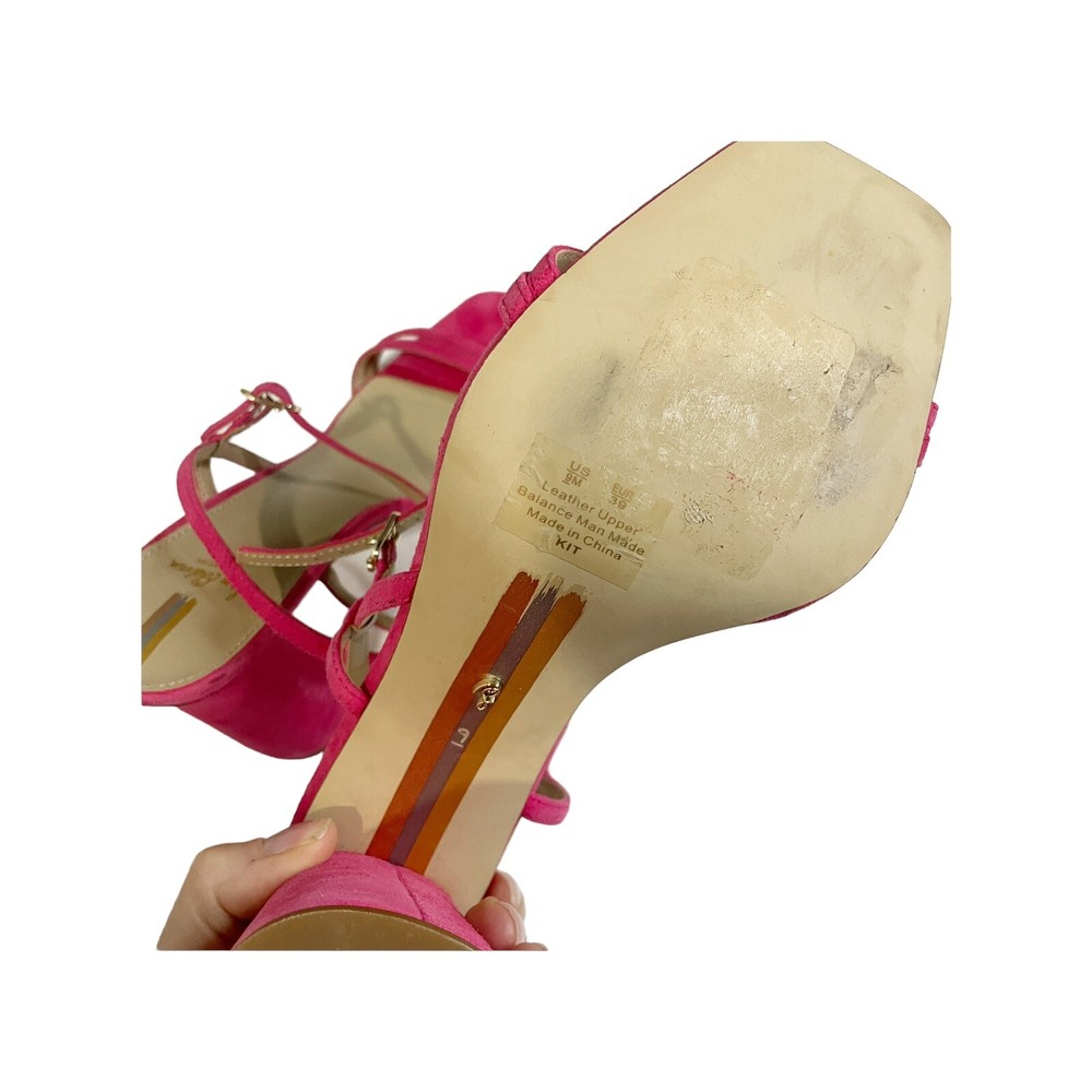 Elevate your style with these beautiful pink kit block heel sandals from Sam Edelman. The slingback design and open toe style add a touch of sophistication to any outfit. The buckle closure ensures a secure fit while the high block heel provides a comfortable and stylish lift. Made with synthetic materials and a suede upper, these shoes are both durable and fashionable. The solid pattern and preppy theme make them perfect for any occasion. Available in size 9 and with a medium shoe width, these heels are sure to become a staple in any wardrobe. new without. box 4" heel height All Measurements Are Approximate Please email us with any questions! ** LIKE THE ITEM BUT NOT THE PRICE, REASONABLE OFFERS ACCEPTED