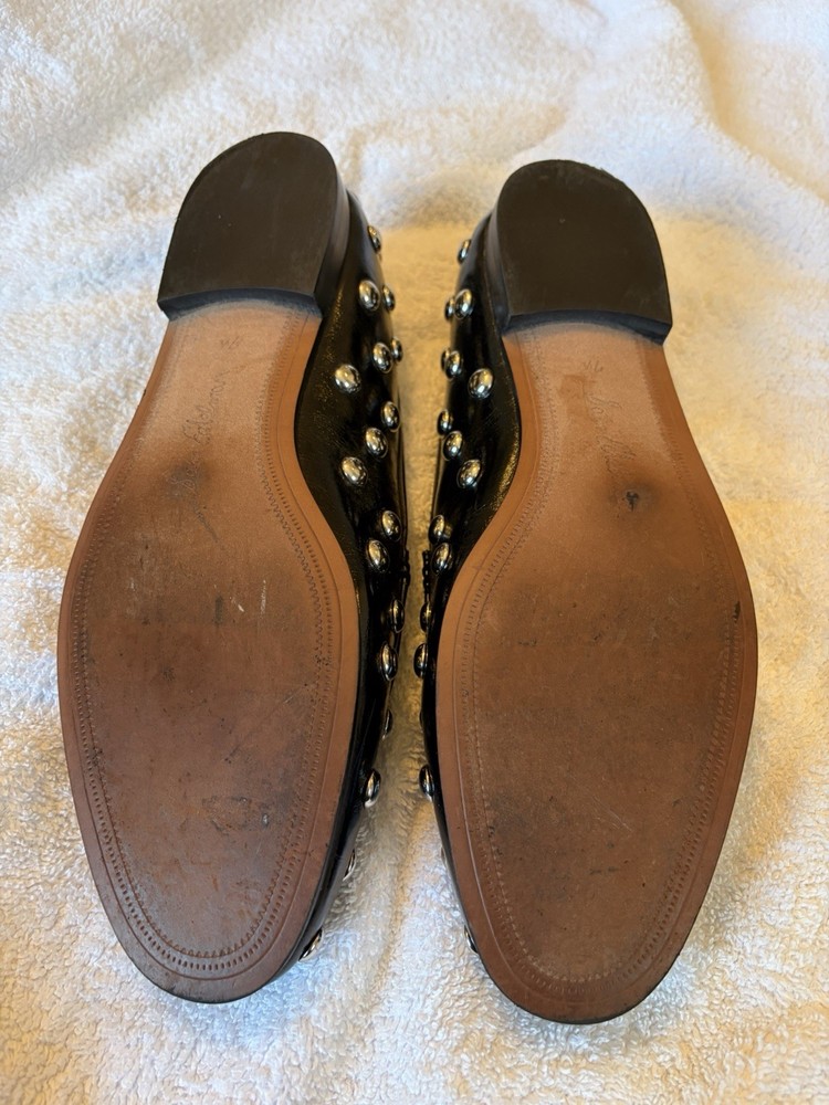 The Sam Edelman Studded Black Loafer with Horse Bit Detail is a stylish and versatile shoe for women in size 7.5. This slip-on loafer features a solid black color with silver studded accents, giving it a a classic, but also edgy look. The horse bit detail adds a touch of sophistication to this simple yet chic shoe from a reputable brand like Sam Edelman. Used, but in excellent condition. Smoke free home.