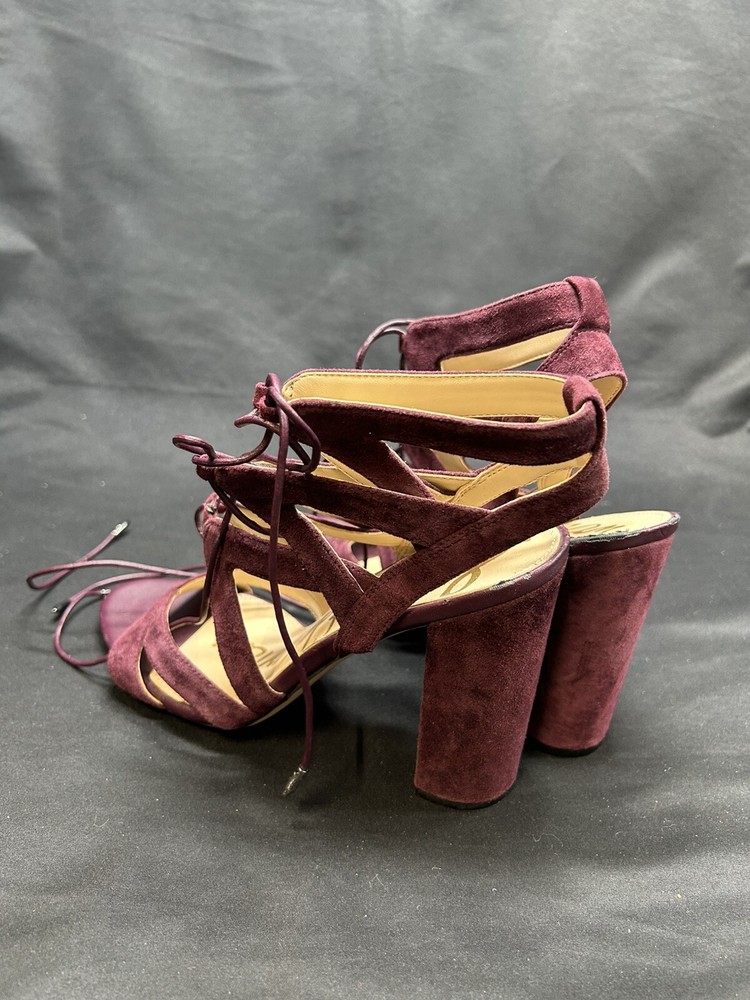 These Sam Edelman heels are a must-have for any stylish woman. The maroon faux suede strappy design is perfect for any occasion. The heels are comfortable and have a sturdy heel that is both fashionable and practical. The size 8 shoes are perfect for women who want to look and feel great. The brand is known for its quality products, and these shoes are no exception. Get ready to turn heads with these beautiful heels that will complement any outfit.