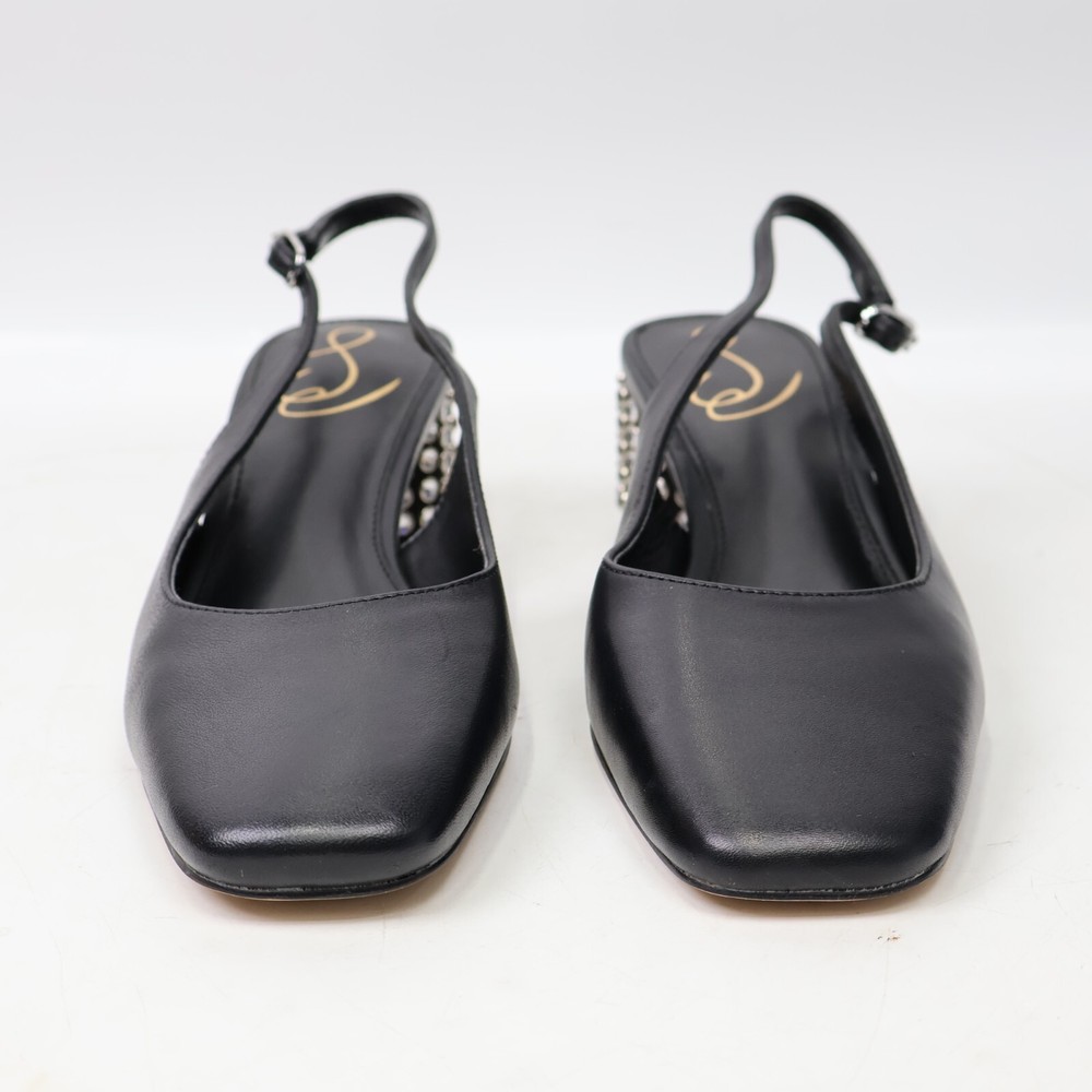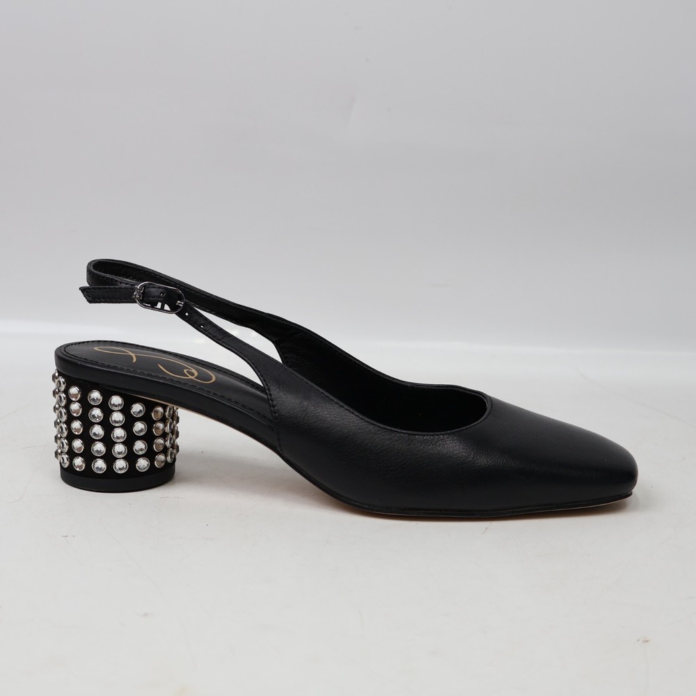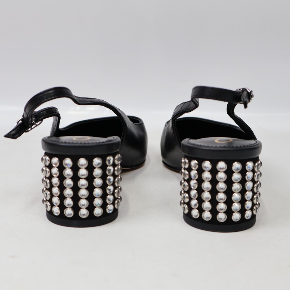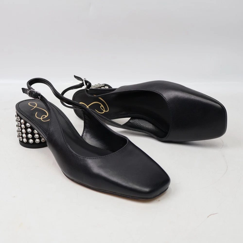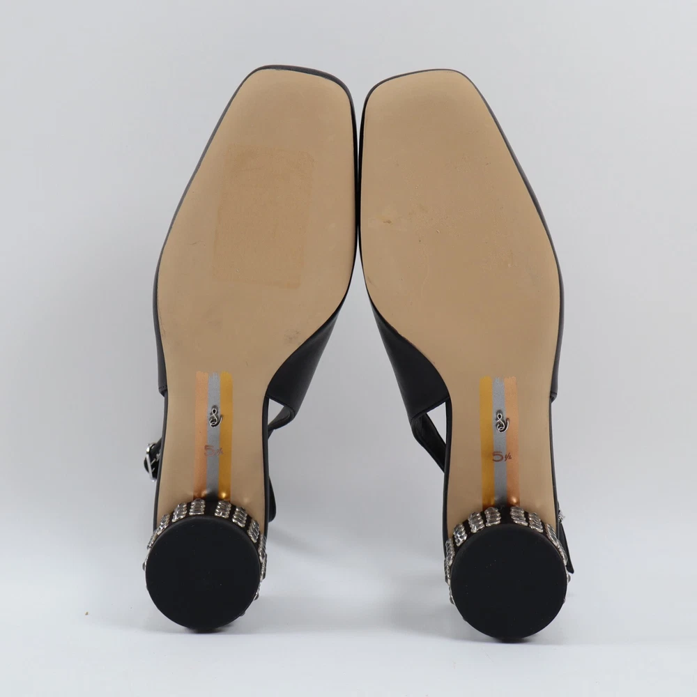 π CONDITION New NO BOX. Excellent condition. Light scuffs from rubbing inside the box. Color: Black MSRP: $160 100% authentic. Purchased through Nordstrom. π SIZING Size: 5.5 US / 35 EU True to size π¦ SHIPPING We ship UPS Ground or USPS Ground Advantage. Items will be shipped from our warehouse in Dallas Texas within 1-3 business days. (We try our best to ship most packages within 1 day! π) Please allow sufficient time for the package to be delivered. (We are a small business and have no control over when the package gets delivered once we hand it off to the carrier. Thank you for your understanding!) β RETURNS We DO NOT accept returns on clothing and accessories. Please make sure you have the correct sizing before ordering. π¬ QUESTIONS? Feel free to ask any questions. I will respond fast! We try our best to describe every item accurately. But we are human after all! If we've made a mistake, please accept our sincere apologies and reach out to use right away. We will make it right! π DESCRIPTION Shine bright with Terra. This slingback heel is ready to party with a blinged-out block heel. Count on them to instantly dress up denim or go toe-to-toe with a sleek LBD. Heel Height: 2 inches Toe: Square Closure: Buckle Material: Leather & Synthetic Insole: Synthetic
