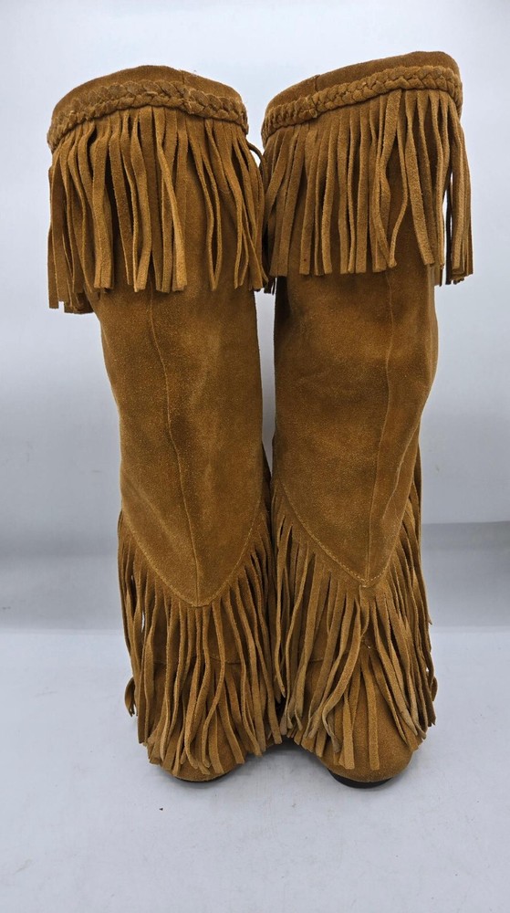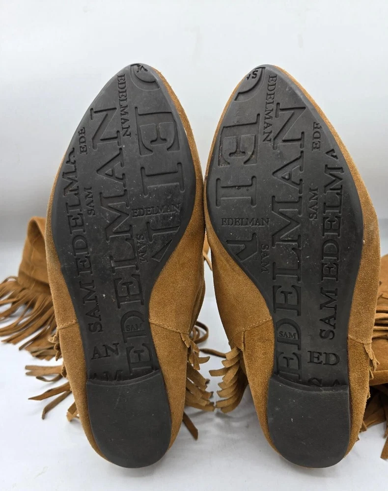 Sam Edelman Utah Moccasin Boots Camel Suede Western Fringe Size 6.5M
