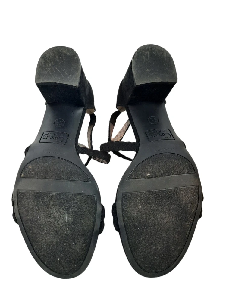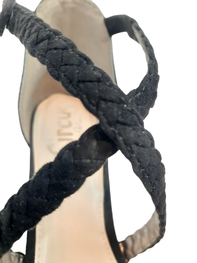 Circus by Sam Edelman Women's Black Sallie Braided Block-heel Sandals Size 9.5. In excellent condition Circus by Sam Edelman Women's Black Sallie Braided Block-heel Sandals Size 9.5. Features black faux suede, chunky block heel, braided straps with buckle closure, open toe heels. Heel height This is a pre-owned item that may show signs of wear. In excellent condition, no flaws.