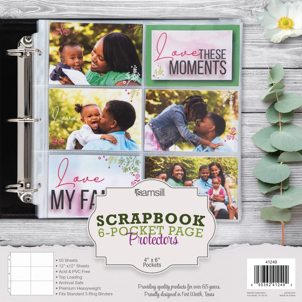 Samsill Scrapbook 6 Pocket Refill Pages 12x12 Inch, 50 Pack, Fits 3 Ring Scra...
