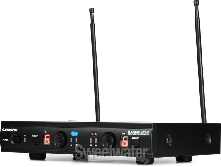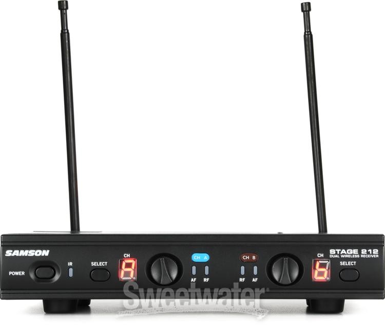 Impressive Wireless Value If you want exceptional value in a wireless microphone package, then you need to check out Samson's Stage 212. This 2-channel wireless handheld microphone system makes cutting the cord easy and cost effective, providing you with two independent wireless channels for less than the cost of a typical wireless system. Claim up to 200' of wireless freedom thanks to crisp and clean VHF bandwidth, while IR sync makes these systems as easy to set up as anything Sweetwater sound techs have worked with. And whether you're going on the road or just worried about taking your mics onstage, this rugged Stage 212 system, with its metal-bodied Q6 mics, can handle it.Built to last and made to perform A lot of affordable wireless systems cut costs by going cheap on materials, swapping out more robust parts for plastic. Samson avoids that pitfall with the Stage 212 system. The Sweetwater is an Authorized Samson Dealer Genuine New Item Sweetwater's 2-year warranty Samson Stage 212 Dual-channel Handheld VHF Wireless System 2-channel VHF Wireless Handheld Microphone System with Rackmount Receiver, Front-panel Volume Controls, and Easy Frequency Setup Functions Impressive Wireless Value If you want exceptional value in a wireless microphone package, then you need to check out Samson's Stage 212. This 2-channel wireless handheld microphone system makes cutting the cord easy and cost effective, providing you with two independent wireless channels for less than the cost of a typical wireless system. Claim up to 200' of wireless freedom thanks to crisp and clean VHF bandwidth, while IR sync makes these systems as easy to set up as anything Sweetwater sound techs have worked with. And whether you're going on the road or just worried about taking your mics onstage, this rugged Stage 212 system, with its metal-bodied Q6 mics, can handle it. Built to last and made to perform A lot of affordable wireless systems cut costs by going cheap on materials, swapping out more robust parts for plastic. Samson avoids that pitfall with the Stage 212 system. The receiver is in a metal chassis, meaning you can toss it in your gear bag or a case and not worry about it getting beat up. The mics themselves are metal too, with tough grilles that can handle getting dropped. Add to that high-quality balanced outputs and sturdy controls, and you have a system that certainly doesn't feel like a budget model. Frequency-agile VHF operation When it comes to analog wireless, bandwidth and frequency range aren't all that are important. In many cases, who these things are managed is equally, if not more, important. With its frequency-agile technology, the Stage 212 constantly seeks out the cleanest frequency band, ensuring clean and clear transmission. On that note, VHF has changed a lot since the DTV standard went into effect over a decade ago. Where once this wireless range was cluttered and often unusable, today it's a truly reliable option. Easy to set up, easy to use With 12 channels to choose from across the 173MHz–198MHz VHF frequency range, you might imagine the Samson Stage 212 handheld wireless microphone system would be a pain to set up. It isn't. In fact, thanks to its IR sync function, setting up is a breeze, allowing you to wirelessly match each mic to a channel almost instantly. From there, you can take full advantage of 200' of transmission and up to 10 hours of running time on just a pair of easily replaceable AA batteries. Samson Stage 212 Wireless Handheld Microphone System Features: Super-convenient, dual handheld VHF wireless system Perfect for small performance spaces, karaoke, presentations, and more Q6 dynamic microphones with integrated transmitters deliver up to 10 hours of operation on 2 x AA batteries 12 operating channels across 173MHz–198MHz frequency range IR sync wirelessly matches receiver and transmitter frequency 200' line-of-sight operating range Robust metal design easily holds up to live-sound conditions Balanced XLR mix and individual 1/4" outputs let you connect to professional sound gear Specification Detail Simultaneous Systems Per Band Up to 3 System: Analog/Digital Digital System: Frequency Range 173-198 MHz System: Operating Range 200 ft. Line-of-sight System: Frequency Response 80Hz-15kHz System: Microphone Included Yes, 2 x Q6 Microphones System: Channel Selection Auto/Manual Microphone: Type Dynamic Microphone: Polar Pattern Supercardioid Microphone: Frequency Response 50Hz-15kHz Transmitter: Form Factor Handheld with Mic Capsule Transmitter: Dynamic Range 100dB (A-weighted) Transmitter: Mute Feature Yes Transmitter: Battery Type 2 x AA Transmitter: Battery Life Up to 10 hours Transmitter: Dimensions 10" x 2.1" Transmitter: Weight 0.48 lbs. Receiver: Antenna Type Fixed Receiver: Type Table Top Receiver: Displays LED Receiver: Outputs 1 x XLR, 2 x 1/4" Receiver: Power Source 15V DC power supply Receiver: Dimensions 8.2" x 5.7" x 1.4" Receiver: Weight 1.3 lbs. RETURN INFORMATION We want you to be completely happy with your purchase from Sweetwater. If you are not satisfied with your product, you may return it for a refund of the purchase price within 30 days. If your purchase was eligible for Free Shipping, the shipping cost will be deducted from your credit or refund. Returns must be in the complete and original packaging with all accessories and complete documentation (Owner's Manual, warranty card, quick start guides, etc.), show no signs of wear or use, and include a Return Authorization number or be subject to a restocking fee.
