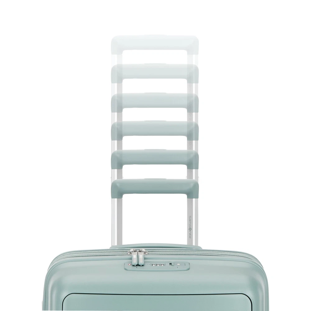 Bring stylish convenience on your next journey with the Elevation™ Plus 22 x 14 x 9 Carry-on Spinner. Keep your most important essentials within reach with the innovative QuickEntry™ pocket, featuring air-mesh sleeves that safely hold up to a 13-inch laptop. The case’s interior offers unmatched packing capabilities, keeping your belongings organized and secure. This unique carry-on spinner meets most airlines' carry-on requirements with the overall 22” x 14” x 9” measurement (check your airline for final requirement.) RightHeight™ handle system with multiple 1” adjustments and an ergonomically designed TPR comfort grip Modernly designed hubcaps with durable and smooth nylon tires Fuzion™ zippers by YKK® eliminate traditional weak points for long-lasting strength and durability Polypropylene material that's known for its flexural strength and fatigue resistance All interior lining fabric is made from Recyclex™ material that's woven from 100% post-consumer recycled plastic bottles Fully removable garment-divider functions as a compression panel, keeping all the belongings organized and wrinkle free while on the go Zippered lining and Wetpak™ pockets on the secondary divider keep all the toiletry and small accessories neat The carry on also comes with a versatile Tecfolio™ pouch for loose charging cables, makeup brushes, and other endless possibilities The keyless TSA-approved lock keeps both compartments secured with the same locking mechanism Integrated AirTag is located subtly right behind the front compartment zipper divider