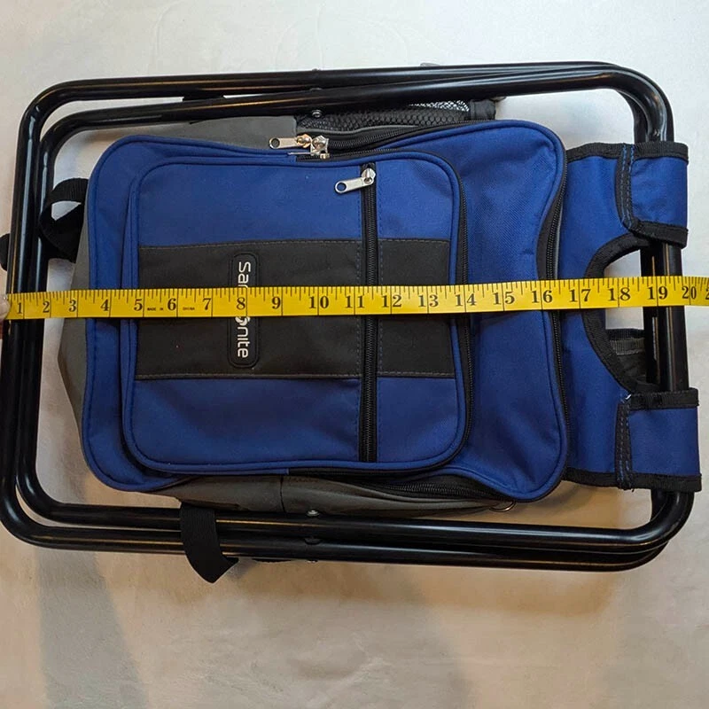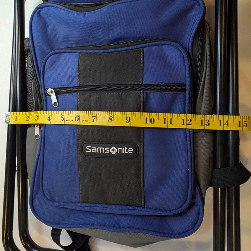 Samsonite Folding Backpack Cooler Chair Camping Fishing Hiking Beach Sports Insulated Cooler: The backpack has an insulated compartment to keep items cold for hours. Folding Chair: It includes a lightweight frame that unfolds into a stool. Durable Materials: Made with polyester, PEVA, and polyurethane foam for long-lasting use. Multiple Pockets: Features various pockets for organization and storage. Comfortable Carry: shoulder straps and a back panel for comfortable carrying. Measurements in photos no tears, stains or holes, excellent pre-owned condition FAST Shipping!