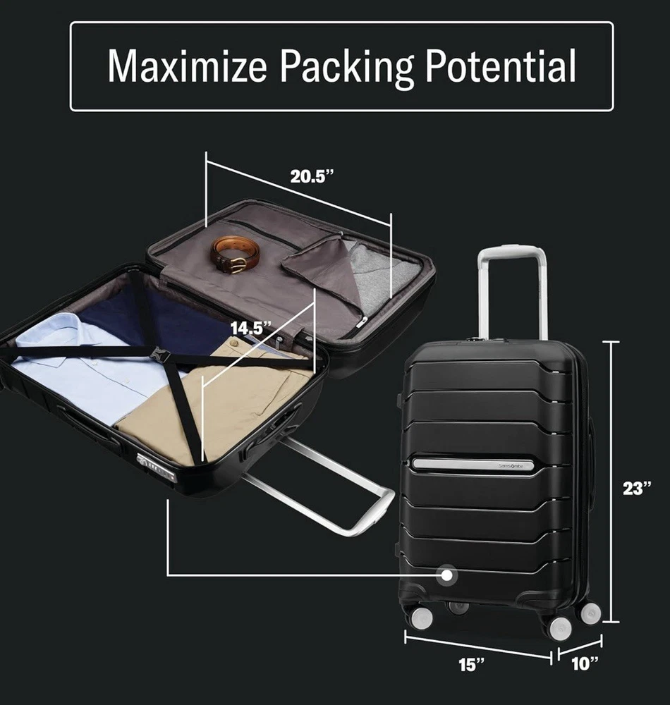HomeSamsonite Freeform Hard Expandable 21” Carry On Luggage Black Suitcase Open Box