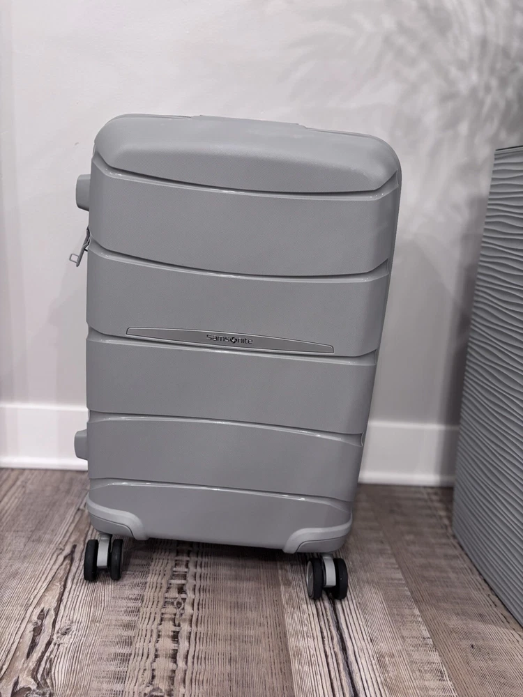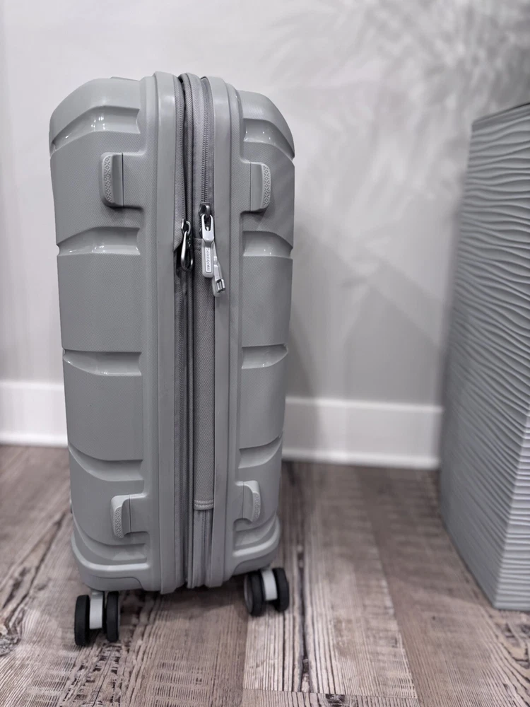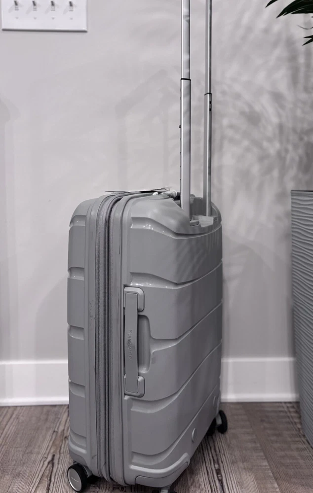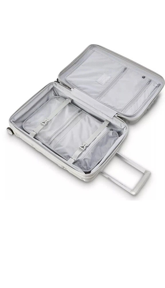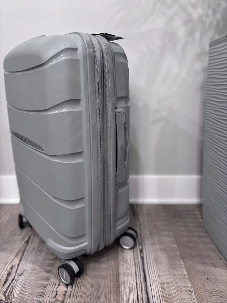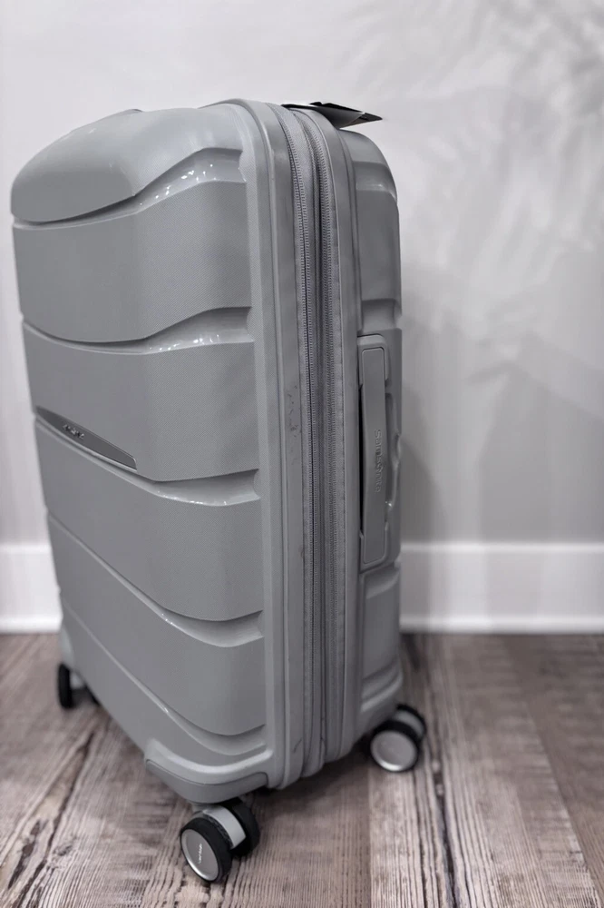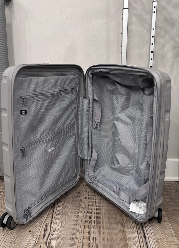New with tag, some minor scratches from shipping and delivery. Pleas check the pictures Exterior Features: Durable polypropylene shell constructed in a clean, contemporary design Built-in TSA lock with an integrated USB port (carry-on sizes only) and internal battery pocket Smooth, dual spinner wheels for easy handling and long-haul travel across any surface Ergonomic retractable trolley handle with multi-stop Right Height™ adjustability Weight: 6.1 lbs Exterior Dimensions: 22”H x 14”L x 9”W Carry-On size and weight allowances vary by airlines. Visit our Carry-On Guide for more details. Interior Features Recyclex® interior liner fabric made from 100% recycled plastic bottles Innovative multi-functional KompressPak™ panel divider offers a compression system creating a neat organization while providing additional space to add more last minute souvenirs. Our unique KompressPak™ divider also comprises a lining zippered pocket for your small odds and ends, while the secondary WetPak™ zippered pocket keeps damp items contained. Interior Dimensions: 20”H x 13.8”L x 9”W