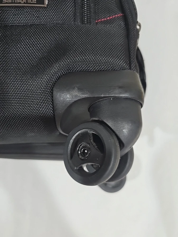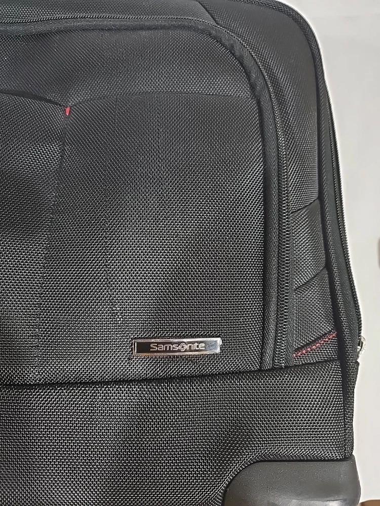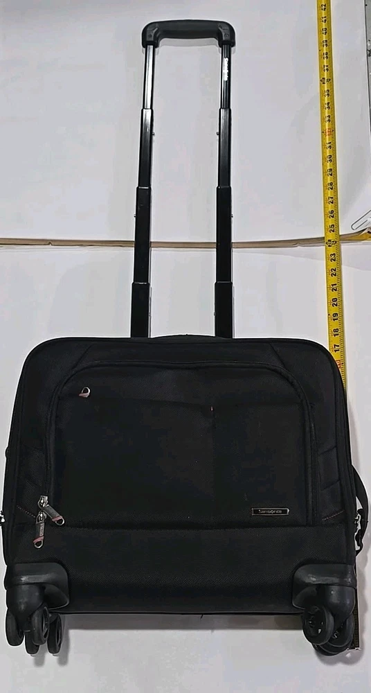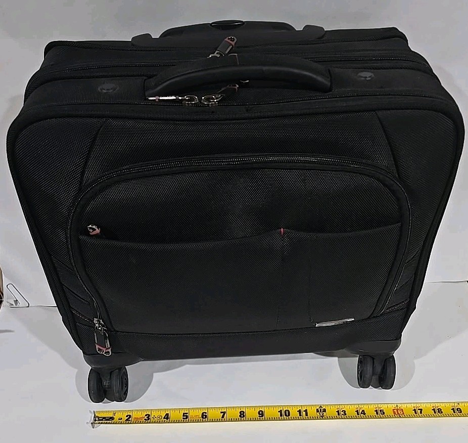 Samsonite Spinner wheel roller bag - from an estate sale, appears lightly used with minor wear. Nylon-feel material. Approximately 17.5" W x 16" H x 7.5"D 16" Laptop (diagonal screen length) fits snugly, probably designed for ~15" Laptop models. Laptop pouch width is approx 13.5" Exact item as shown in photos. Ask if additional photos or descriptions are needed. Thanks for looking!