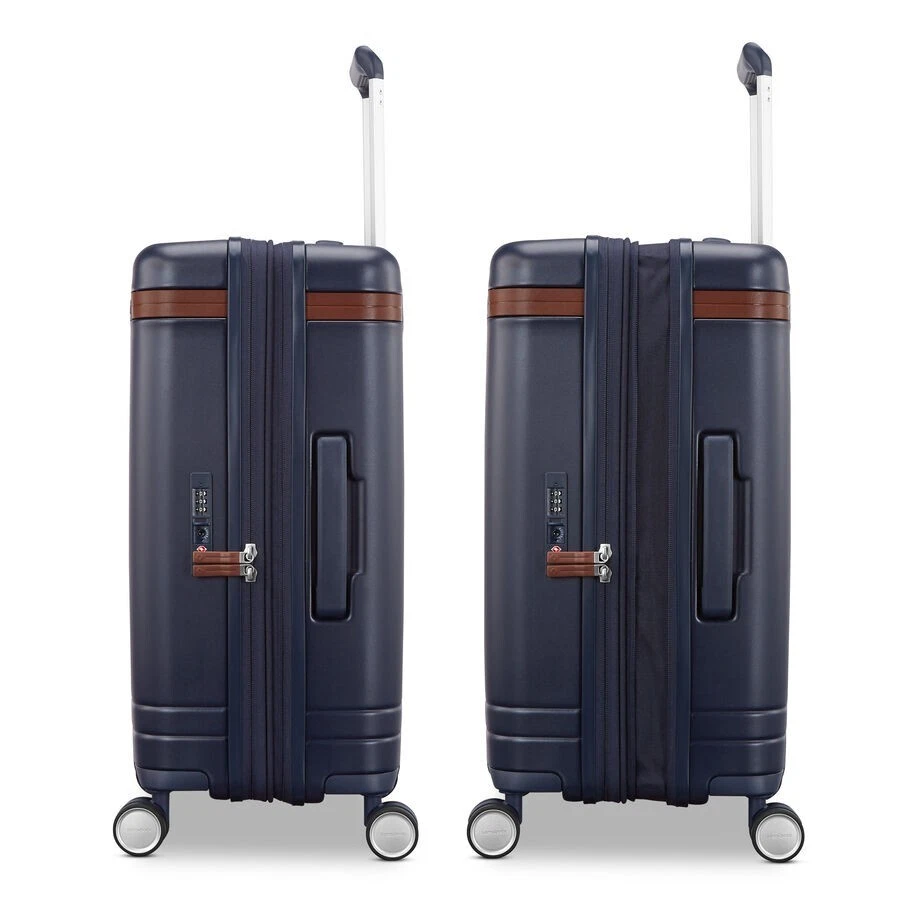 Elevate your carry-on aesthetic with the Virtuosa Expandable Carry On. Featuring expansion, a TSA integrated lock, RightHeight™ handle, dual spinner wheels, and sleek leather-like accents, this case is the ultimate stylish addition. Overall Dimensions: 23 in. x 15 in. x 10 in. Weight: 6.39 lbs