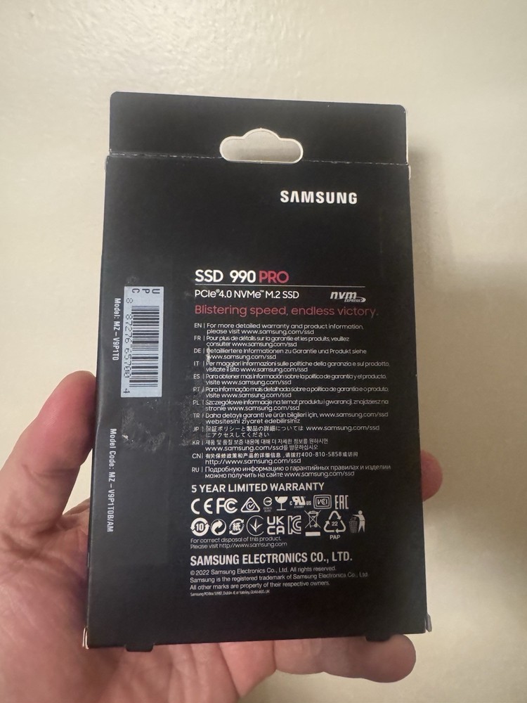 The Samsung 990 PRO 1TB M.2 NVMe Internal SSD in black is a high-performance storage solution designed for computers and laptops. With a lightning-fast read speed of 7450MB/s, this SSD offers rapid data access and transfer, enhancing system efficiency for tasks such as multitasking, gaming, and multimedia editing. This model from Samsung, known for its reliability and quality, provides ample storage capacity of 1TB, making it suitable for demanding applications that require superior speed and storage capabilities. Brand new never used still in sealed box.