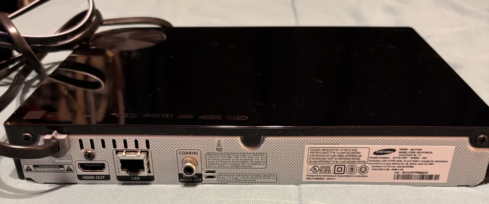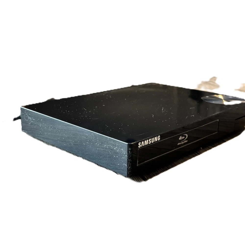 Elevate your home entertainment experience with the Samsung BD-5700 Blu-Ray DVD Player. This sleek, black device offers a high-definition 1080p output for crystal-clear picture quality. It's designed to support a variety of Blu-ray formats, ensuring compatibility with your existing collection of movies and music DVDs.The Samsung BD-5700 comes equipped with Dolby True HD technology, delivering a rich and immersive audio experience. It also features HDMI connectivity for easy setup with modern televisions. This model, manufactured in Indonesia, includes the original remote for convenient operation.