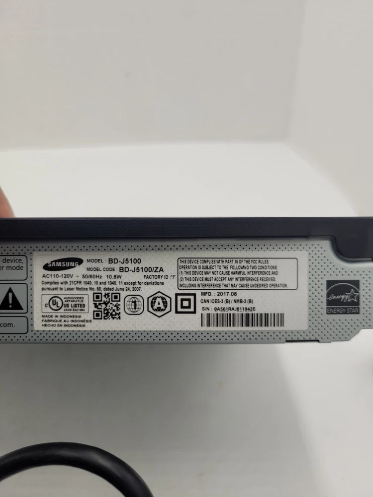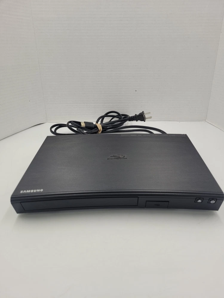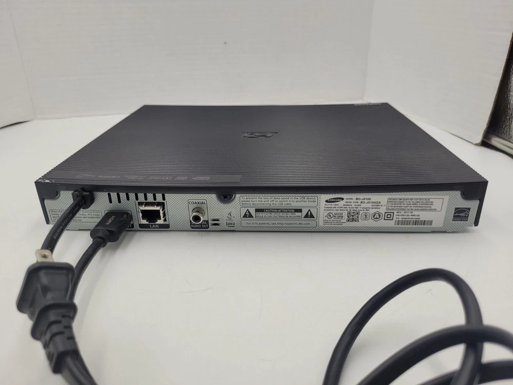 Experience high-quality video and audio with the Samsung BD-J5100 Blu-ray DVD player. This compact unit is a great addition to your entertainment system, allowing you to play your favorite movies and music with ease. With its built-in Wi-Fi streaming capabilities, you can access various internet and media streaming services, making it a versatile choice for your home entertainment needs. This black Blu-ray player supports various playable media formats, including DVD-R, Blu-ray, DVD-RW, BD-R, CD-R, DVD+RW, CD-RW, BD-RE, DVD+R, and DVD Video. It also features HDMI connectivity, allowing you to enjoy your media in high definition. Elect1