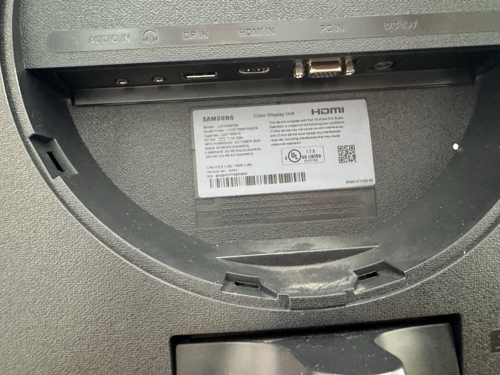 Compact Standard Description This Samsung C27F398 27 inch curved monitor is in great working condition. It features a Full HD 1080p display with vibrant colors and smooth visuals. It includes HDMI and DisplayPort inputs which makes it easy to connect to PCs, laptops, gaming consoles, and more. The screen has a clean picture with no dead pixels