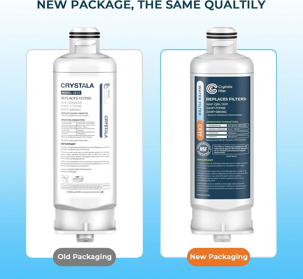 Fast Shipping Great Customer Support Satisfaction Guaranteed DESCRIPTION Shipping Shipping Shipping All domestic packages are shipped for Free (Unless other shipping method was selected during the checkout) Most items ship and arrive much sooner than the estimate delivery date. Usually within 2-3 days from payment. However, we have longer estimates to compensate for the occasional delay or supply chain breakdown. We do not accept P.O. BOXES - PLEASE PROVIDE A PHYSICAL ADDRESS Return Return Return In the event that you would like to return your purchase, we allow returns that are processed within the defined return date (the return date is to be found in the return policy/shipping and handling section) Please contact us for a return authorization and the return shipping address. Payment Payment Payment PayPal is our preferred method of payments it's the quickest, easiest and most secure way to pay for your goods or services online. PayPal offers buyer and seller protection should there be a problem. If you do not have a PayPal account, to get started and buy your first item with us is very easy. Simply click on the 'Buy It Now' button and follow the eBay checkout steps. Select PayPal as the payment method you then will be given the chance to enter your card details in to PayPal's secure checkout in order to pay for your order. Once the payment has been made, you will then be given the opportunity to make your own PayPal account to make paying for your items in the future very easy. Should there be a problem with payment please do let us know. Feedback Feedback Feedback Customer satisfaction is very important to us. If you have any problem with your order,please contact us and we will do our best to make you satisfied, please do not leave a negative feedback before we resolve your problem. We guarantee that your issue will be solved quickly. As long as you are happy with your purchase of , please leave us a positive feedback. Your feedback is very important to us it affects our search placement on eBay. We will leave a positive feedback for you in return automatically once we receive your feedback. Contact Us Contact Us Contact Us If you have any queries, please contact us via ebay. We usually respond within 24 hours on weekdays. Thank you for visiting our ebay store! Crystala Filters Replacement for DA97-17376B Refrigerator Water Filter Statement: Tested & verified by independent laboratory testing, it can remove 97.9% chlorine and improve water’s smell and taste. Compatible with HAF-QIN/EXP Water Filter Cartridge Certification: Lead-free, BPA free, uses 100% selected coconut shell carbon block from Sri Lanka. In compliance with the NSF 42 standard. Certified model “CF17”. Replacement for HAF-QIN Refrigerator Water Filter Life: 6 months or 300 gallons. Premium replacement for DA97-17376b: Retains beneficial minerals while removing impurities in water. Replacement for DA97-17376B, HAF-QIN, HAF-QIN/EXP, BRF365200AP/AA, DA97-08006C, RF23M8070SG, RF23M8070SR, RF23M8090SG, RF23M8090SR, RF23M8570SR, RF23M8590SG etc. Samsung Compatible Water Filter Replacement 4 Pack NSF 42 DA97-17376B Click here to see description Fast Shipping Great Customer Support Satisfaction Guaranteed DESCRIPTION Shipping All domestic packages are shipped for Free (Unless other shipping method was selected during the checkout) We ship within two business days of payment, usually sooner Standard FREE shipping takes between 3-5 business days Expedited shipping takes between 2-3 business days Overnight shipping takes between 1-2 business days We do not accept P.O. BOXES - PLEASE PROVIDE A PHYSICAL ADDRESS We Ship Globally using ebay's GSP, the item is sent to a logistic center in KY and shipped from there to the rest of the world. International customers are responsible for all duties and taxes Contact your local authority for questions related to the amount of duties or taxes you will be responsible for Return In the event that you would like to return your purchase, we allow returns that are processed within the defined return date (the return date is to be found in the return policy/shipping and handling section) Please contact us for a return authorization and the return shipping address. Please contact us for a Return Merchandise Authorization (RMA) number. We advise you to use a reputable carrier service when returning your goods. Please pack all returns appropriately. We ship globally Via eBay's global shipping program (GSP). Thus we don't cover returns for items shipped globally. Buyers returning such items will be refunded ONLY for the item's cost and not for the shipping. please check the Voltage information and make sure it matches the one in your country. In case it's not stated in the description, do ask us. Payment PayPal is our preferred method of payments it's the quickest, easiest and most secure way to pay for your goods or services online. PayPal offers buyer and seller protection should there be a problem. If you do not have a PayPal account, to get started and buy your first item with us is very easy. Simply click on the 'Buy It Now' button and follow the eBay checkout steps. Select PayPal as the payment method you then will be given the chance to enter your card details in to PayPal's secure checkout in order to pay for your order. Once the payment has been made, you will then be given the opportunity to make your own PayPal account to make paying for your items in the future very easy. Should there be a problem with payment please do let us know. Feedback Customer satisfaction is very important to us. If you have any problem with your order,please contact us and we will do our best to make you satisfied, please do not leave a negative feedback before we resolve your problem. We guarantee that your issue will be solved quickly. As long as you are happy with your purchase of , please leave us a positive feedback. Your feedback is very important to us it affects our search placement on eBay. We will
