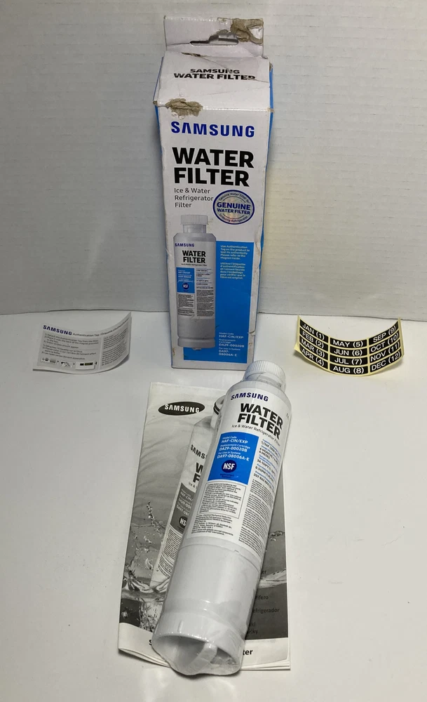 Samsung DA29-00020B HAF-CIN/EXP Refrigerator Fresh Water Filter Cartridge- 1Pack. The filter is new and still sealed in the plastic. The box shows some wear from storage. The item will ship out safely and securely the same or next business day.