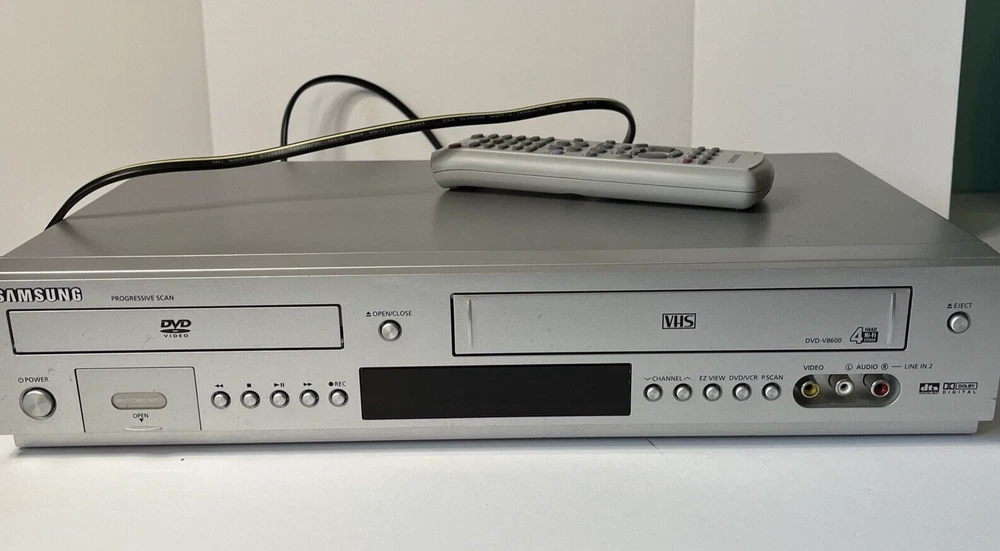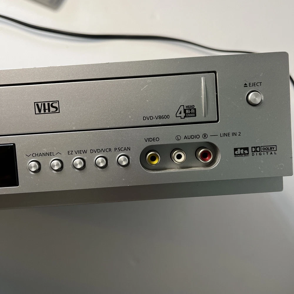 Color: Silver Country/Region of Manufacture: Indonesia Model: DVD-V8600 Type: DVD Player Seller Notes: “DVD Not working; VHS works great; remote included (not tested)” gtin13: 0750413100247 Number of VCR Heads: 4 Brand: Samsung UPC: 0750413100247 Audio/Video Outputs: Digital Audio Coaxial RCA Features: VCR MPN: DVD-V8600/XAA Playable Media Format: CD, DVD, Picture CD, JPEG