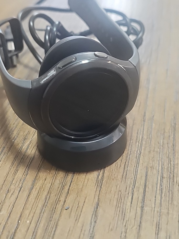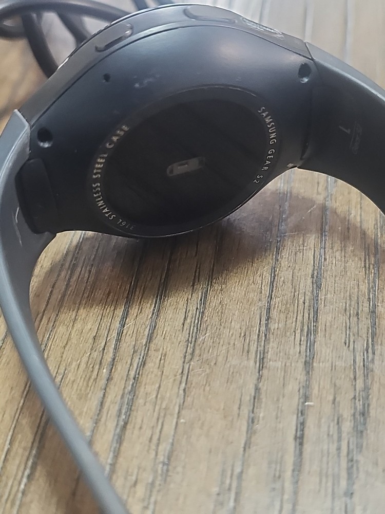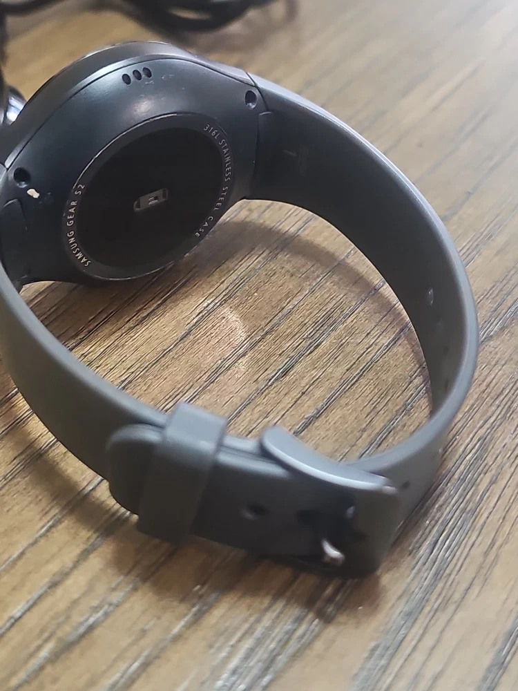 The Samsung Galaxy Gear S2 44mm Stainless Steel Case in Dark Gray is a stylish and functional smart watch designed for use with AT&T's network. This smart watch features a classic buckle design with a silicone band in gray. The stainless steel case and 44mm size give it a sleek and modern look, while the 4GB storage capacity allows for ample space for storing apps and media. Compatible with Android operating systems, the Samsung Gear S2 runs on the Tizen OS, providing a smooth and efficient user experience. Includes charger