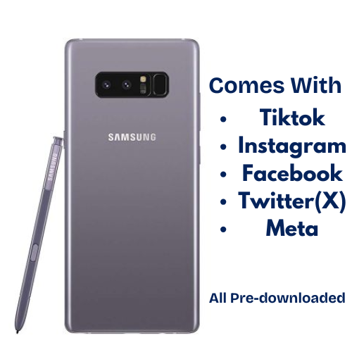 π₯ Ready to Use β Just Sign In! This Samsung Galaxy Note 8 comes pre-loaded with popular social media apps, so you can start scrolling, posting, and connecting immediately ! No need to download anything β just sign in and enjoy! β TikTok β Watch & create viral videos β Instagram β Post stories & reels β Facebook β Connect with friends & groups β Snapchat β Send Snaps & keep streaks alive β Twitter (X) β Stay updated with trending topics β YouTube β Watch & stream instantly π Key Features: 6.3β Quad HD+ Super AMOLED Infinity Display (2960 x 1440) Dual 12MP Rear Cameras + 8MP Front Camera S Pen for Notes & Creativity 6GB RAM | 64GB Storage (Expandable up to 256GB) Fast Charging | USB-C | Wireless Charging Fingerprint & Facial Recognition for Security At&T