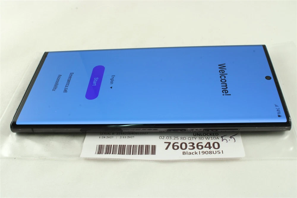 WebPage Samsung Galaxy S22 Ultra 5G 512GB Black - Unlocked AT&T T-Mobile Verizon 7603640 This item is in LIKE NEW cosmetic condition. PHOTOS ARE OF THE ACTUAL PRODUCT FOR SALE: PLEASE REVIEW THE PRODUCT PHOTOS CLOSELY! Condition Description Like New LIKE NEW items show little to no signs of use. These items were previously tested and removed from the packaging; however, they were handled lightly and show only minor wear. The following items are included with your purchase: USB Sync/Charging Cable Generic Retail Box 30 Day Warranty Free Shipping *PLEASE NOTE: A wall charger adapter is NOT included, but you can purchase one here: WALL CHARGER LISTING UNLOCK STATUS: This item is FACTORY UNLOCKED and compatible with many carriers worldwide. In some cases, it may be necessary to adjust your network settings before the device will operate with your carrier. Please contact your carrier with the model number referenced in this listing to ensure compatibility. IMPORTANT NOTES: This phone is guaranteed to have a maximum battery capacity of 80% or higher! This device is in LIKE NEW cosmetic condition and shows no visible damage from a distance of 12" away. It is guaranteed to be completely free of LCD screen burn or shadows, compatible with the advertised carrier(s), and comes with a 30 day money back guarantee. The product is guaranteed to have a battery that exceeds 80% capacity relative to new, which is the industry standard. Generic Description: The power of our fastest chip ever and sophisticated AI enables revolutionary night-time video that?s as clear-as-day. And, for the first time, S Pen with its increased super-powers has been embedded in Galaxy S22 Ultra?s beautifully sleek design. Today, Galaxy S22 Ultra sets an epic standard of smartphone experience. Domestic Shipping General Information: Once we receive your payment, your item will be shipped for FREE within one business day via USPS First Class Mail. Depending on your location, you may also have the option to upgrade to a faster shipping service. Please see below for information on cost and transit time. Business days do not include weekends or holidays. USPS First Class Mail (Cost = FREE) : Estimated delivery 2-6 business days after purchase depending on your delivery location. This includes one business day for processing and one to six business days for delivery. FedEx 2Day Shipping (Cost = $5.99) : Estimated delivery 2-3 business days after purchase depending on your delivery location. This includes one business day for processing and two business days for delivery. FedEx 1Day Shipping (Cost = $69.99) : GUARANTEED delivery 1 or 2 business days after purchase. This includes one business day for processing and one business day for delivery. International Shipping General Information: We are proud to offer International shipping to many countries through the eBay Global Shipping Program! The item will be shipped to an eBay approved export facility in Erlanger, Kentucky, USA. From there, the item will be exported to your international delivery address. This item includes a 30 day warranty through our online store. If your item is received in a condition other than described, please contact us directly by phone or email for an immediate solution. When purchasing from us, you can rest assured we are 100% committed to satisfying our customers and are proud to stand behind our products with a Full 30-Day Money Back Guarantee. Please do not leave low ratings on our account without contacting us first by phone or email. We proudly accept all payment methods supported by eBay Managed Payments! Payment is due immediately upon purchase. eBay requires that we ship only to the address provided with your payment at the time of checkout. Please make sure the shipping addres you provide to eBay is correct prior to confirming your payment. If you have any questions or concerns before or after receiving your item, please do not hesitate to contact our customer service team by clicking on the button below. Please make sure to reference an eBay item number with your message. E-mails are answered Monday through Saturday in the order they are received. Please allow up to 24 hours for a response to your message. Rest assured all customer inquiries are a high priority and will be responded to in a timely and professional manner. Your satisfaction is guaranteed! brand new