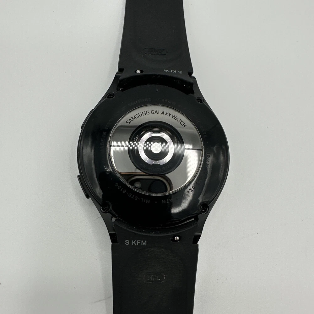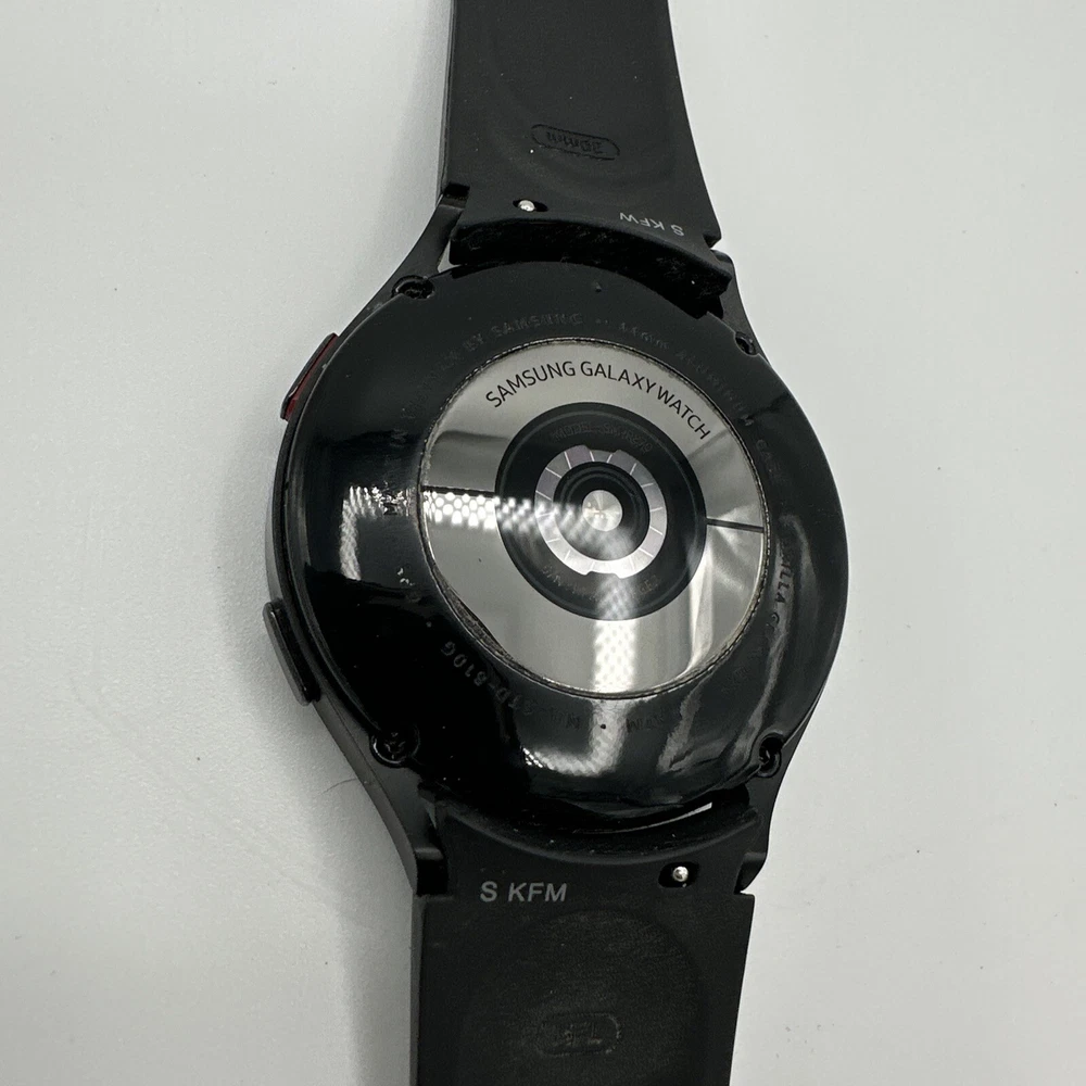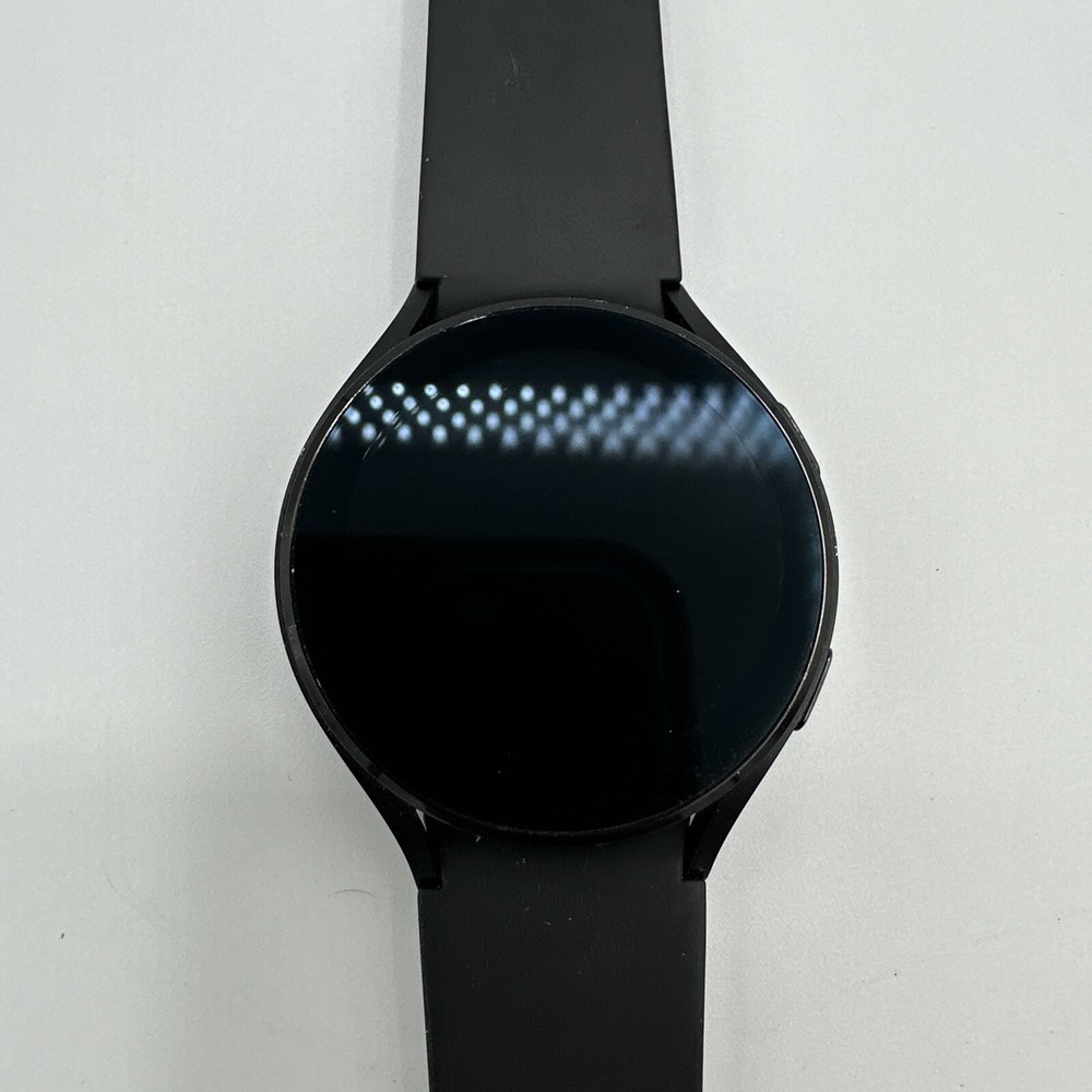 The Samsung Galaxy Watch 4 is a smartwatch with a 44mm black aluminum case and black silicone band. It features GPS, Wi-Fi, Bluetooth, and NFC connectivity, and is compatible with Android operating systems. The watch is in good working condition and has been tested to ensure it is fully functional. G1