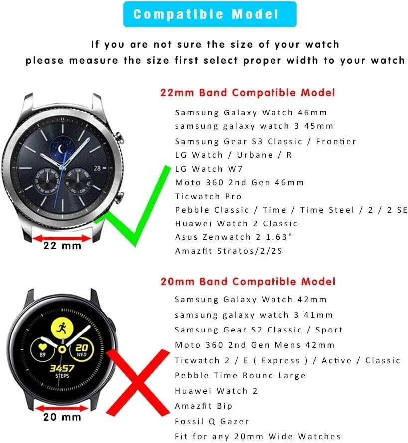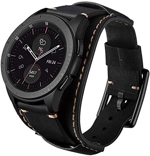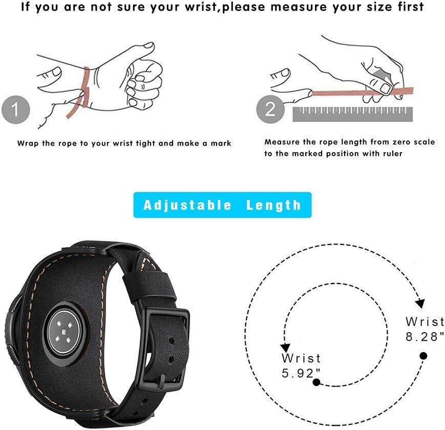 22mm Leather band compatible with Watch 46mm SM-R800/R805, Watch 3 45mm, Samsung Gear S3 Frontier/Classic, Pebble Time, Asus ZenWatch 2, Moto 360 2nd Gen Men's 46mm, LG Watch Urbane etc... fit for any 22mm Wide Watches. Fits the Wrist: 175mm~205mm(6.9"~8.07"). With distressed Crazy Horse Calfskin finish and amazing hand stitch combined to form a unique vintage and retro style. Watch strap will generate its unique gloss over time. Band comes with quick released spring pins to lock onto watch securely & tightly. Easy to take on/remove without remove tool. Thick metal buckle locks your watch Sturdy. Inspired by equestrian fixtures, the ingenious design and finely worked modern Cuff leather is adapted to allow the heart rate sensor to stay in contact with the wrist. Any problem we will deal with it for you.