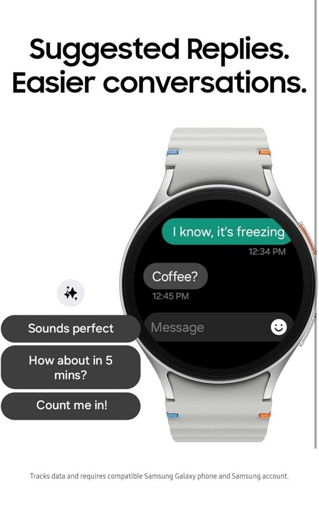 Galaxy AI features track data and require compatible Samsung Galaxy phone, Samsung Health app and Samsung Account. ²Available for outdoor running and cycling only. Must follow the same starting point and path as a workout selected from up to 14 days prior. ³The heart rate software functions are not intended for medical use. ⁴Requires compatible smartphone. ⁵Must wear device for 7 nights during a 30 night period. ⁶The Sleep Apnea Feature is an over-the-counter (OTC) software-only, mobile medical application operating on a compatible Samsung Galaxy Watch and phone. This feature is intended to detect signs of moderate to severe obstructive sleep apnea in the form of significant breathing disruptions in adult users 22 years and older, over a two-night monitoring period. Intended for on-demand use. This feature is not intended for users who have previously been diagnosed with sleep apnea. Users should not use this feature to replace traditional methods of diagnosis and treatment by a qualified clinician. The data provided by this device is also not intended to assist clinicians in diagnosing sleep disorders. ⁷Tracks data and requires compatible Samsung Galaxy phone, and Samsung Account. ⁸4G LTE standalone connectivity only available on Samsung Galaxy Watch7 LTE / Galaxy Watch Ultra versions. Requires initial pairing with an eligible Android smartphone and separate qualifying wireless plan. Support may be available only in certain areas. Please check with your carrier for more info. ⁹4G LTE stand-alone connectivity only available on Samsung Galaxy Watch7 LTE / Galaxy Watch Ultra versions. Requires initial pairing with an eligible Android smartphone and separate qualifying wireless plan. Your carrier may not support stand-alone voice calling, or support may be available only in certain areas. Please check with your carrier for more info. ¹⁰Select interchangeable watch bands sold separately. ¹¹Requires compatible smartphone.